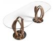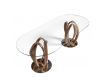 Oval dining table with fixed glass top and walnut wood legs with a stainless steel baseRecipient :
