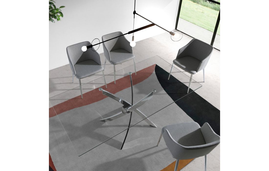 Dining table with fixed tempered glass top and stainless steel legsRecipient :