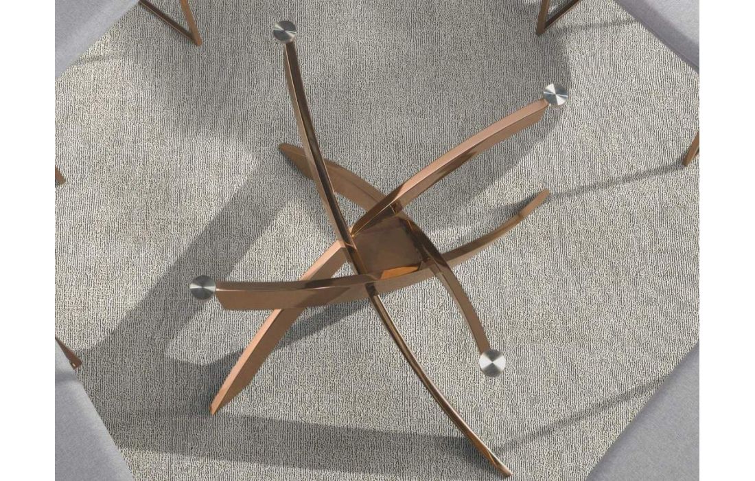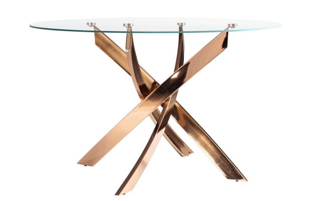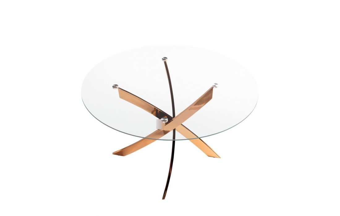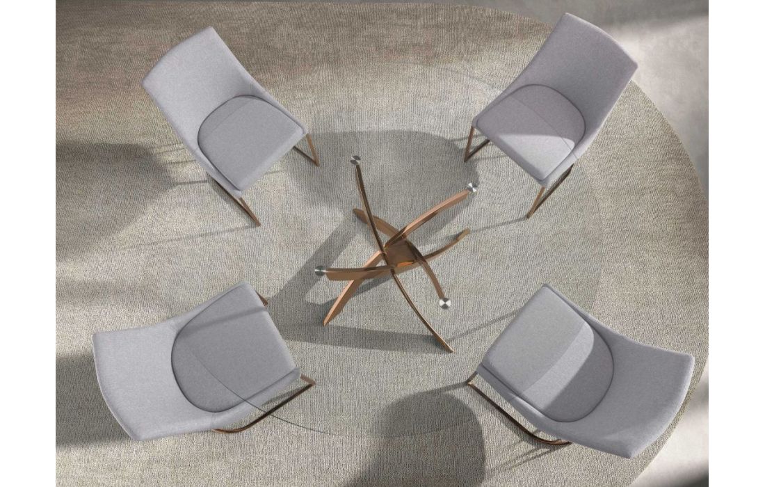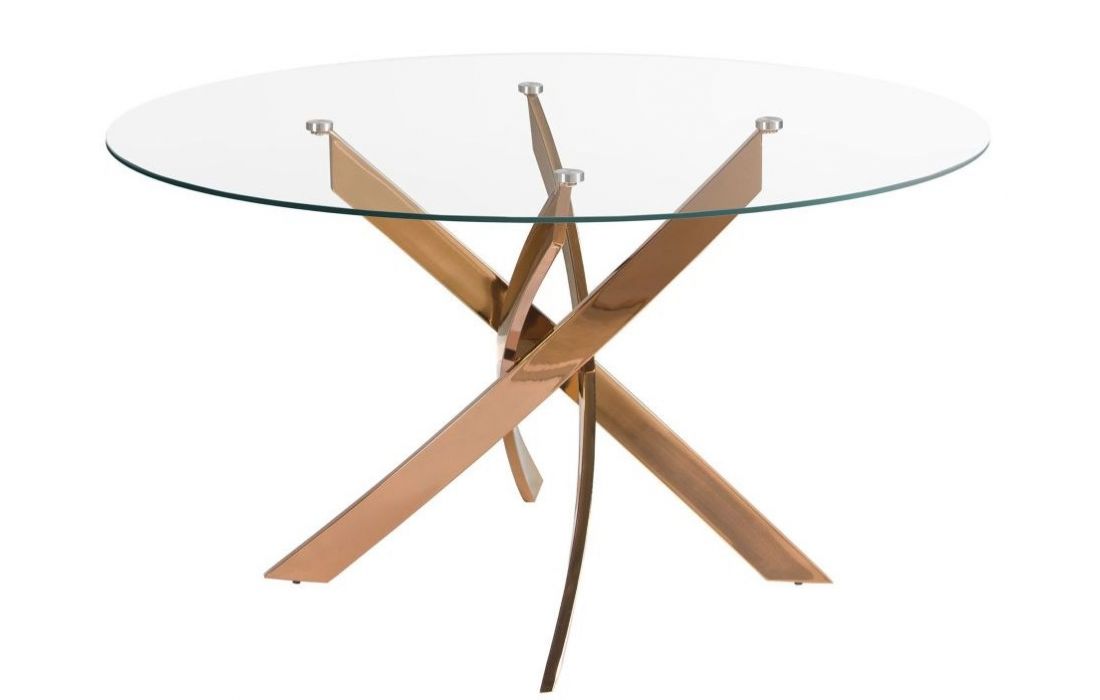 Modern round dining table with fixed tempered glass top and chromed stainless steel legsRecipient :