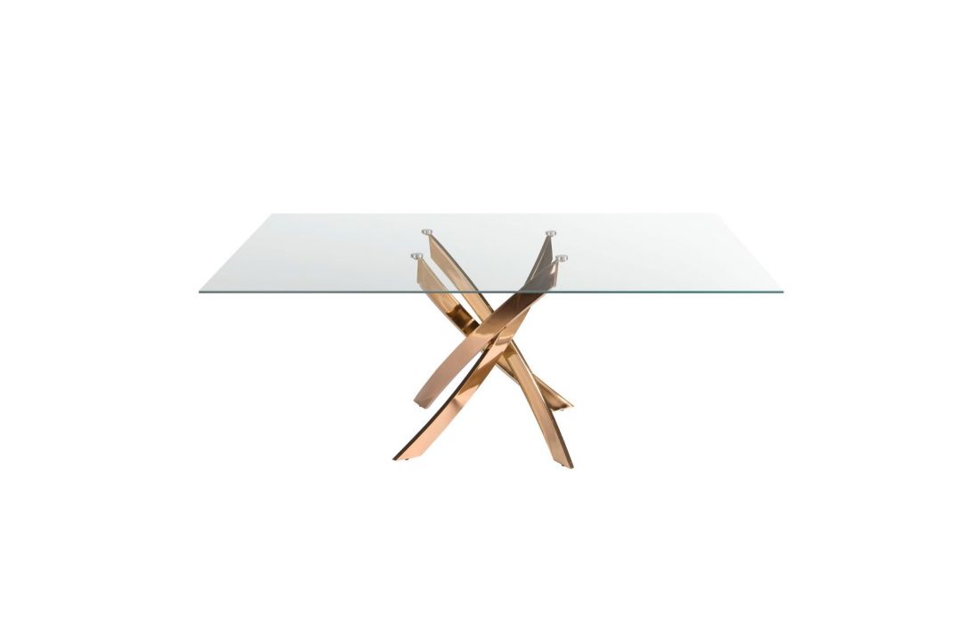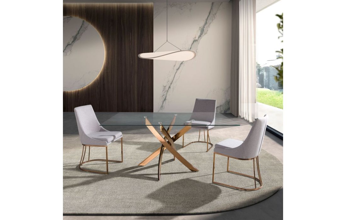 Modern rectangular dining table with fixed tempered glass top and chromed stainless steel legsRecipient :
