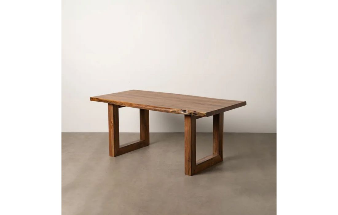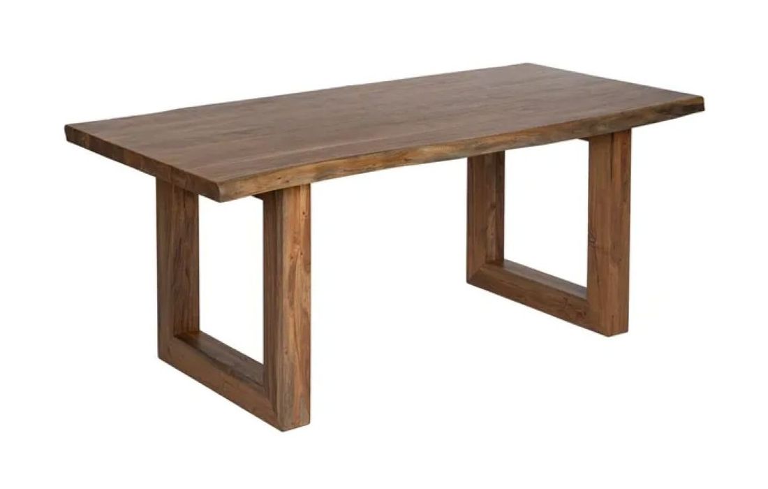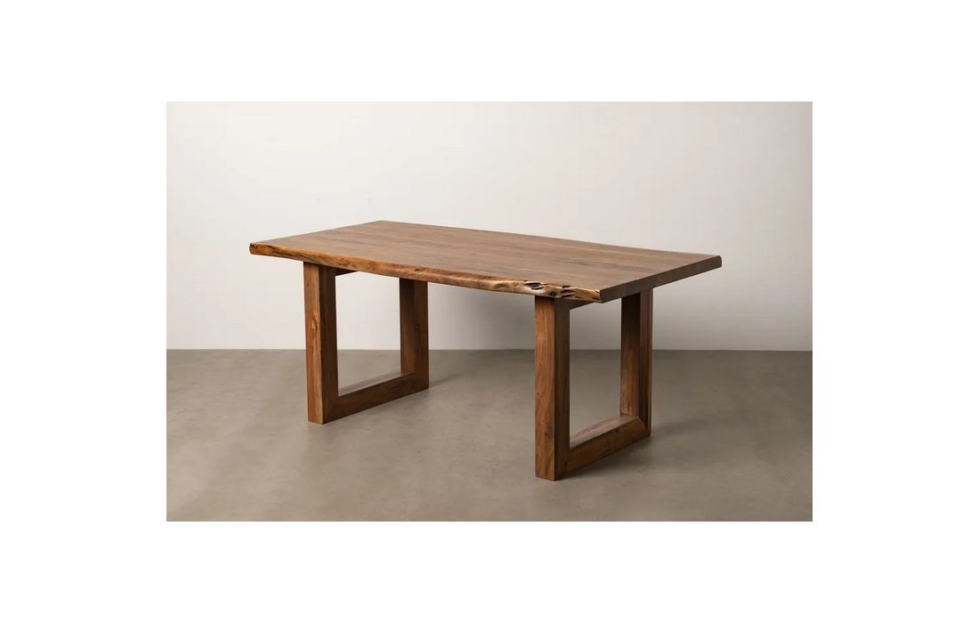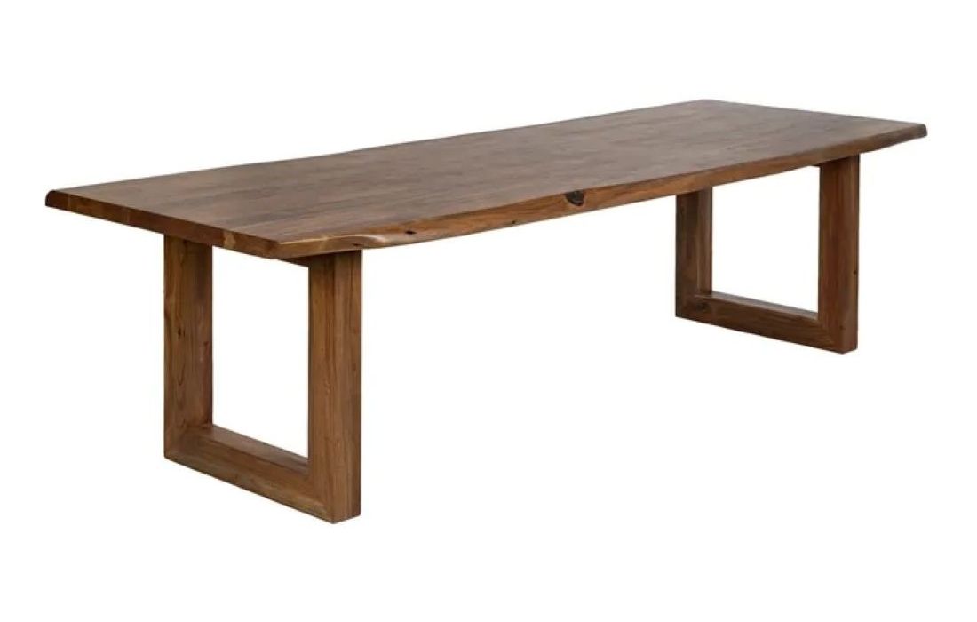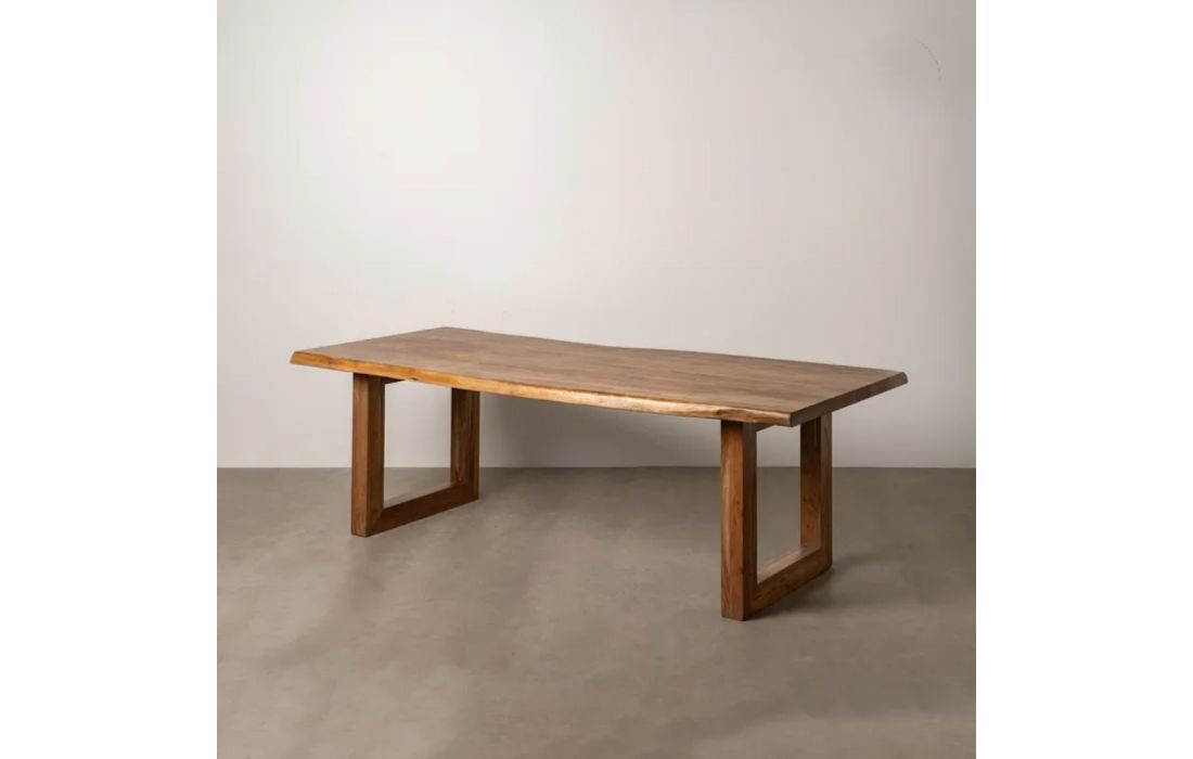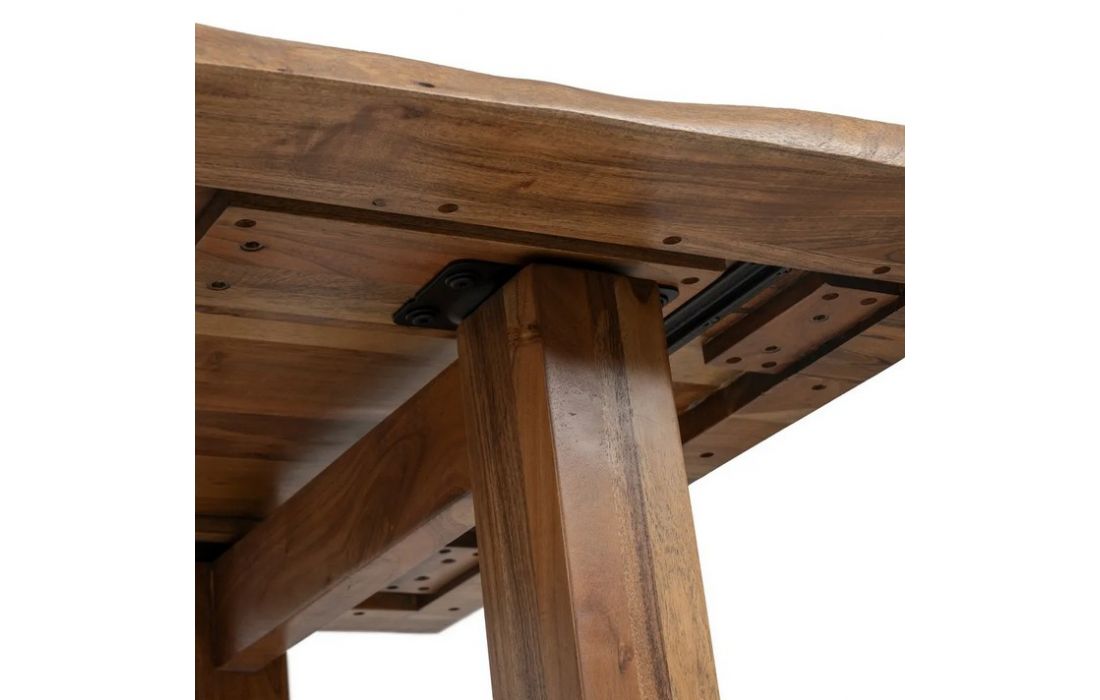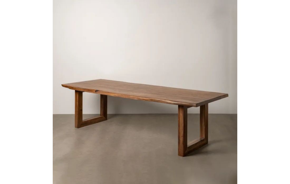 Dining table made of acacia wood, its legs can be positioned in different positionsRecipient :