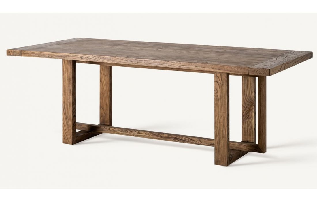 The NORVIK DINING TABLE, crafted from elm wood, is a symbol of warmth and refined design.Ideal for sophisticated interiors and diverse projects, its durability and natural aesthetic make it suitable for any setting.Available in three sizes.