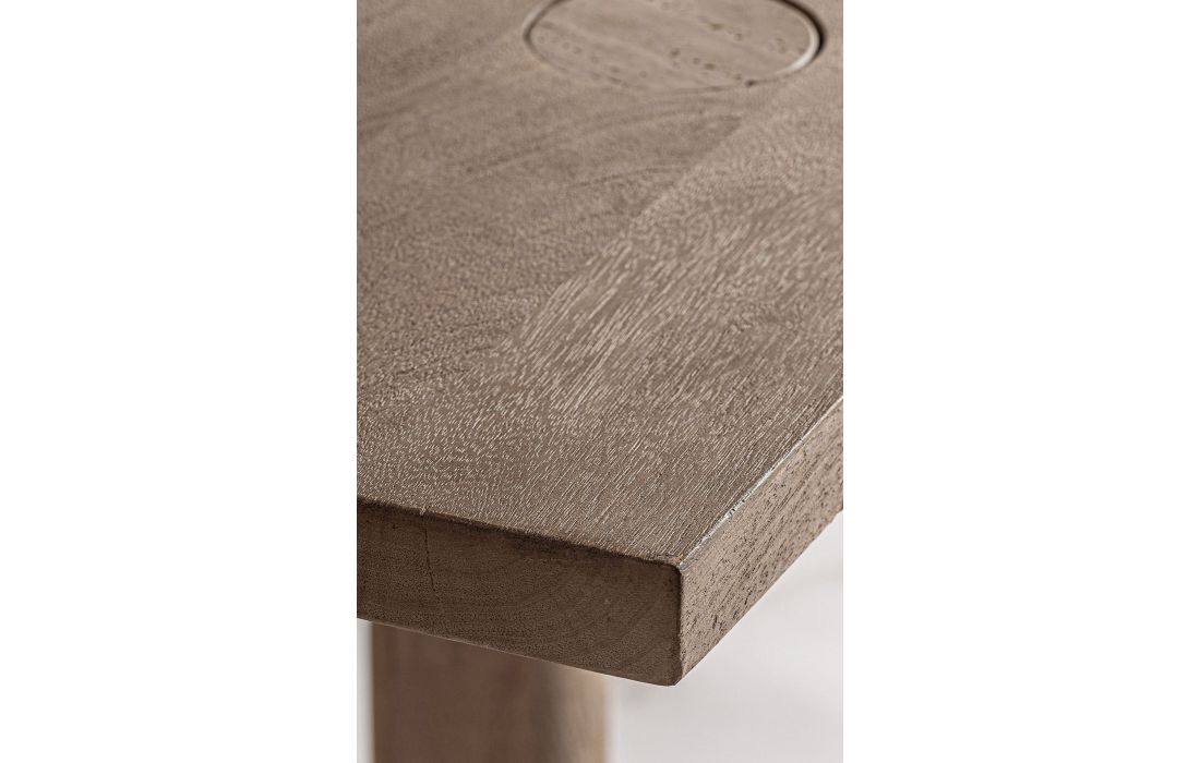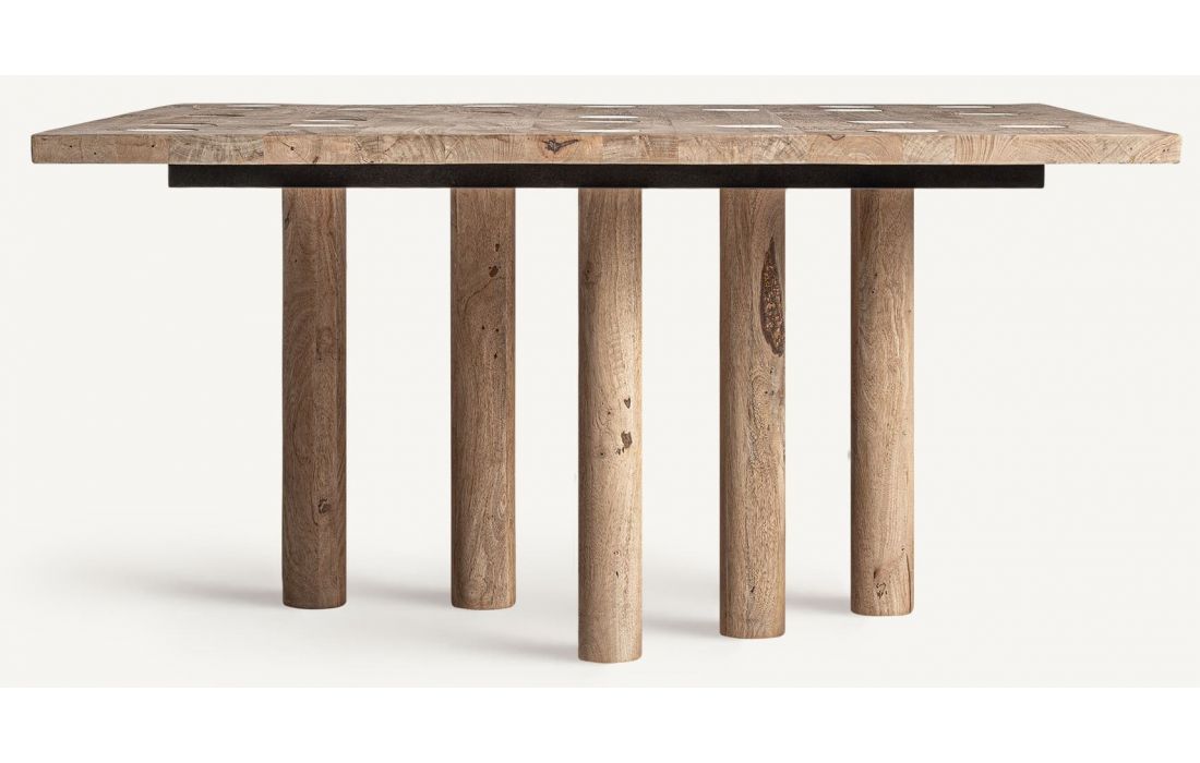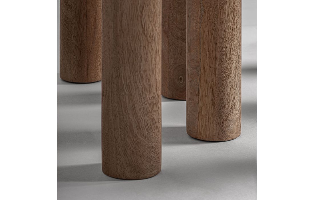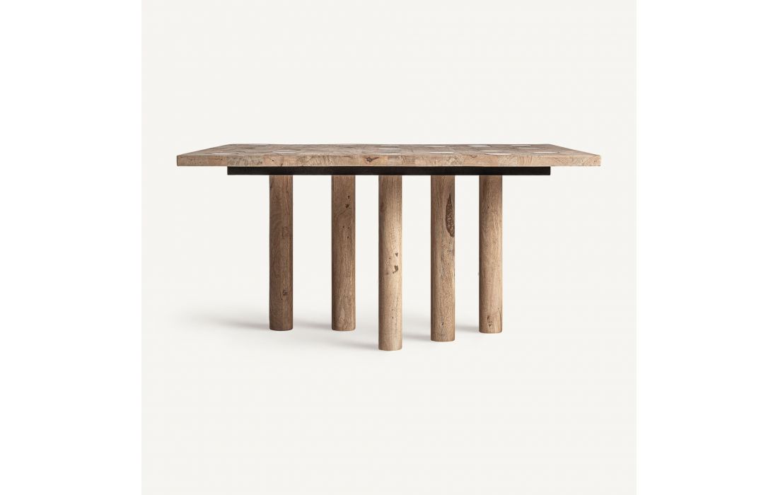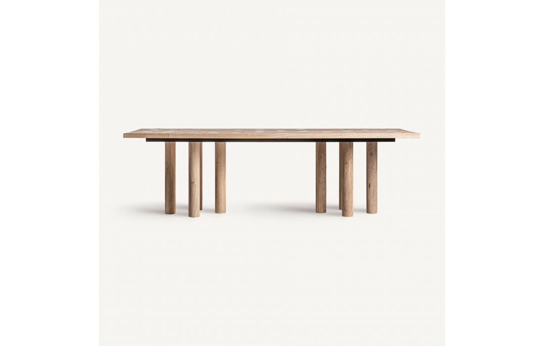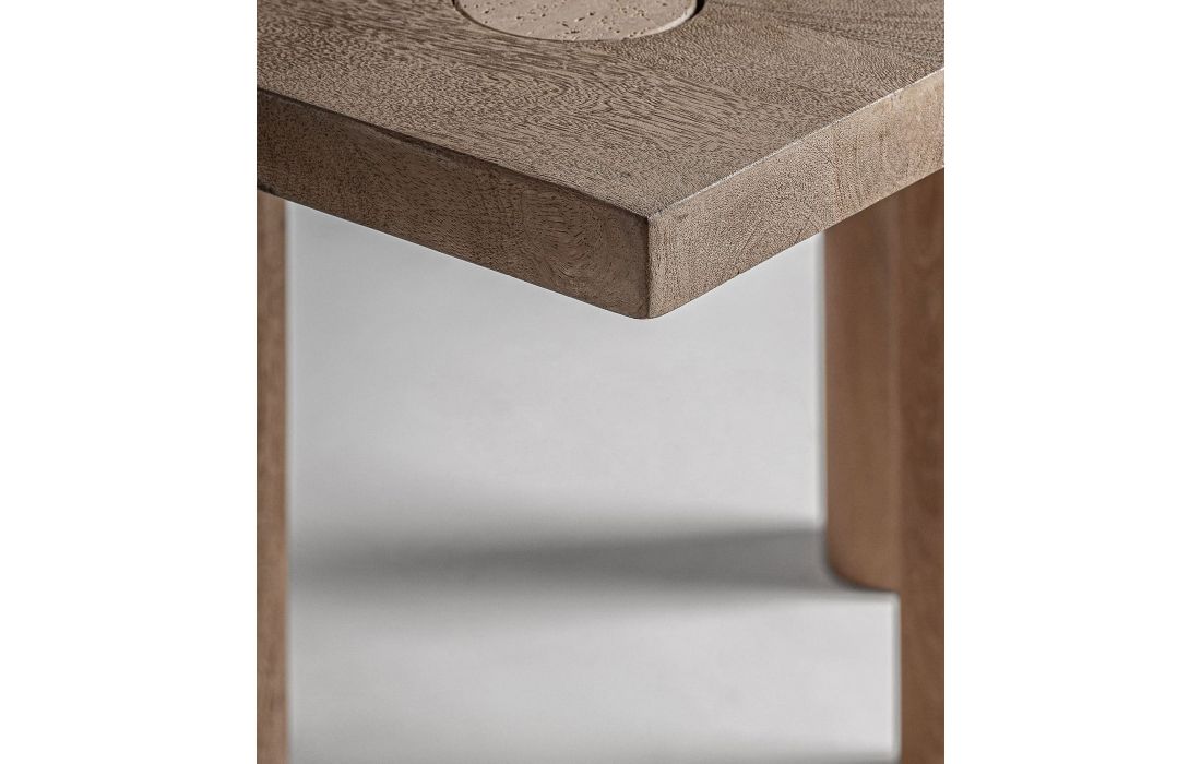 The JACQUARD DINING TABLE combines mango wood with travertine in a contemporary reinterpretation of noble materials.Its solid presence and sculptural language bring great visual strength to the space.Available in two sizes. Dimensions in cm L 250D 110 H 76