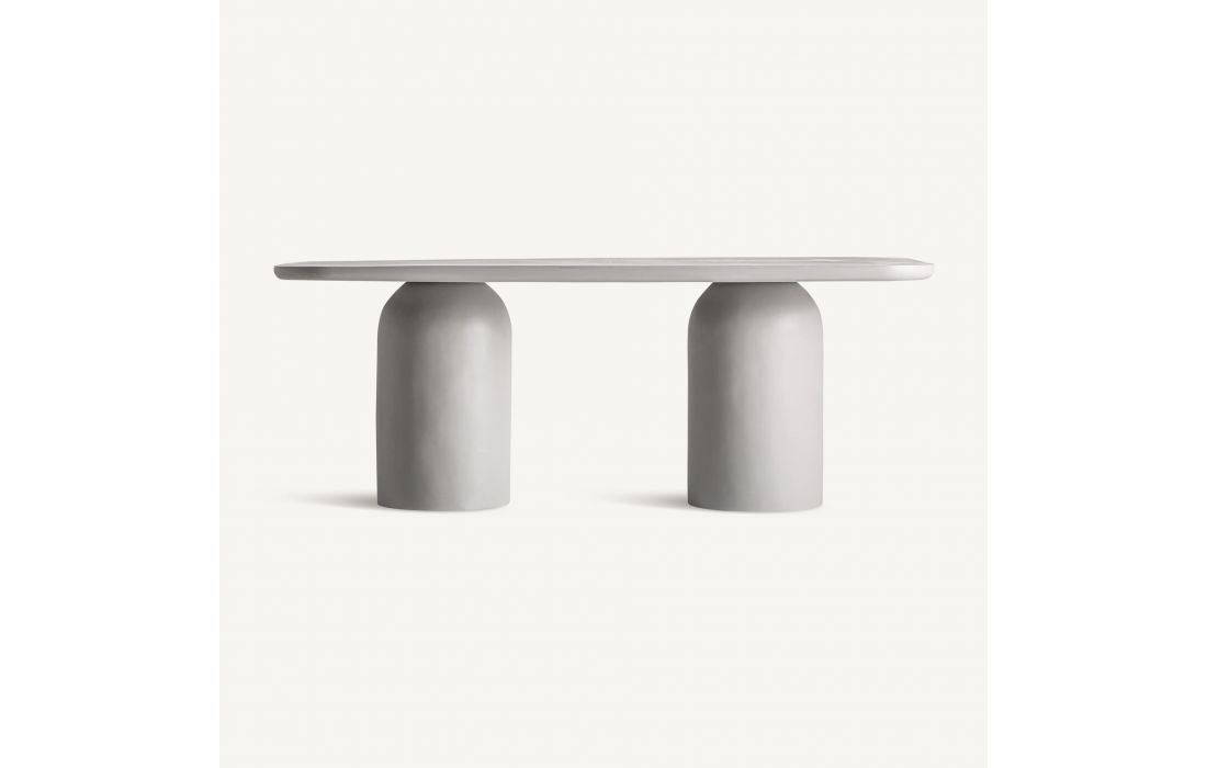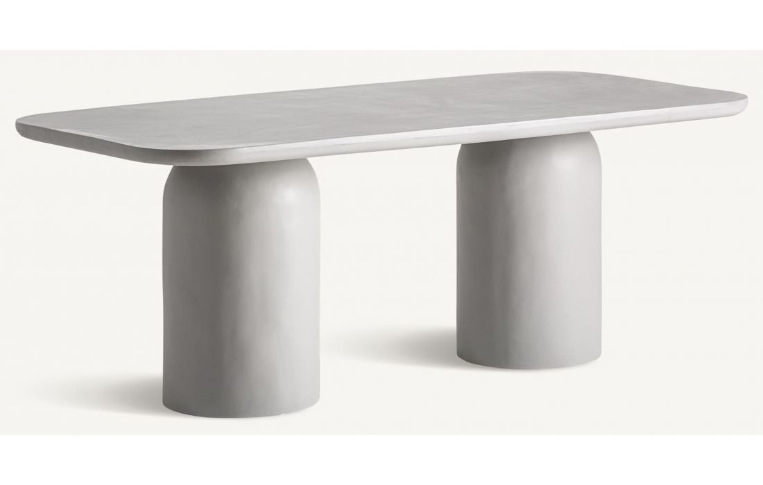 The FELHASENA dining table is a sculptural design statement.Made of reinforced concrete, it brings serenity and visual strength to the dining room. Dimensions in cm L 200D 100 H 77
