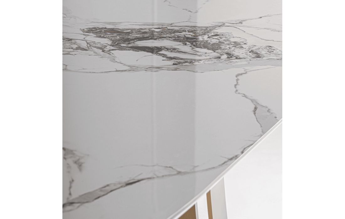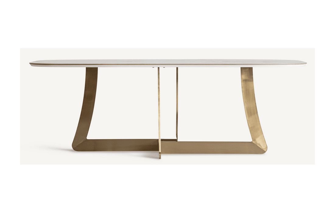 The JUSSEY DINING TABLE, a contemporary Art Deco style piece in porcelain and steel, is ideal for projects seeking exclusivity and an iconic touch.