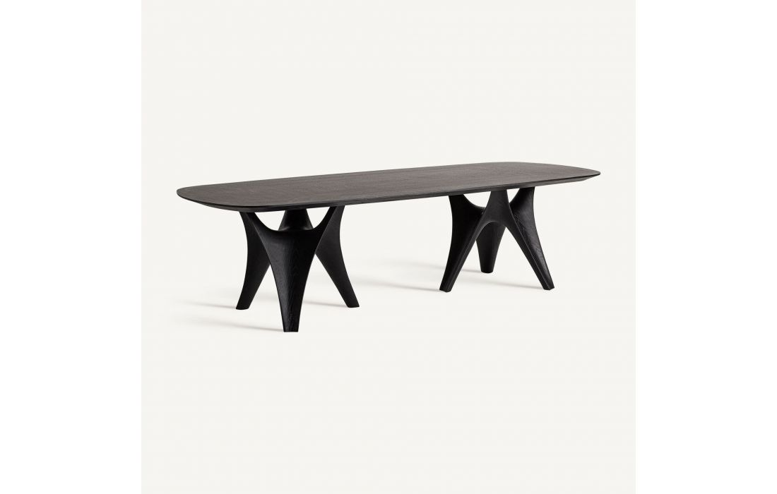 Sculptural solidity and contemporary character.The BILZEN DINING TABLE is made of oak veneer and combines MDF and fiberglass to create an imposing and sophisticated base.Perfect for dining rooms seeking a statement piece, robust yet full of style.