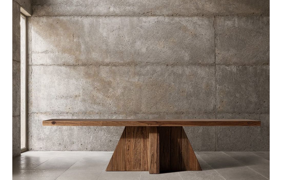 The Brutalist Dining Table is a manifesto of solidity.Its cross-shaped base supports the roof with monumental purity, evoking Japanese assembly techniques.Created for large spaces, where functionality and sculpture coexist in solemn balance.Available in two sizes.