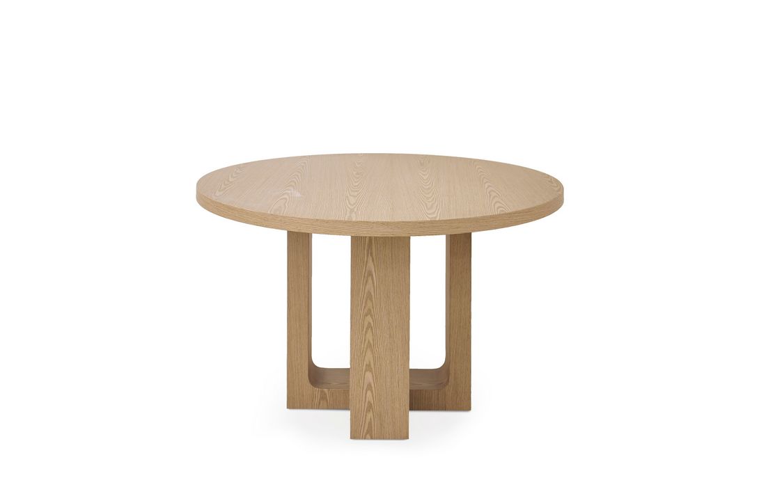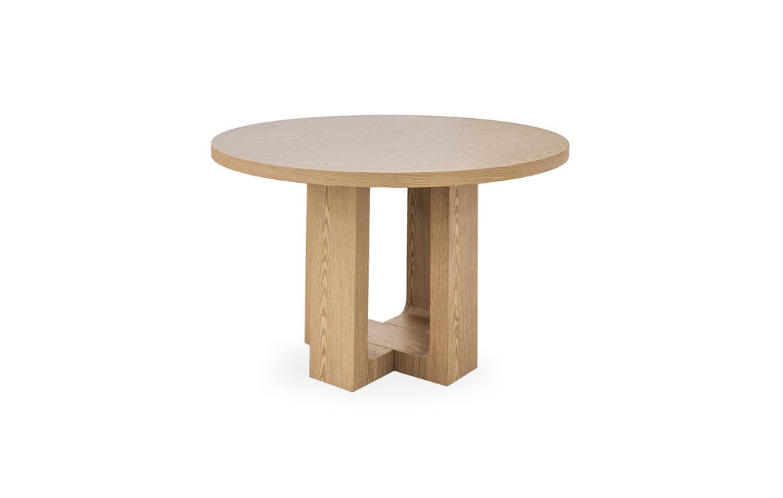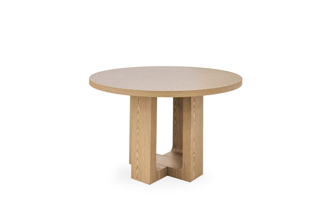 This table stands out for its elegant design, veneered in oak, giving a sculptural and modern touch to any space. An ideal piece for inviting dining rooms or spaces with Japanese, Scandinavian, or contemporary styles.