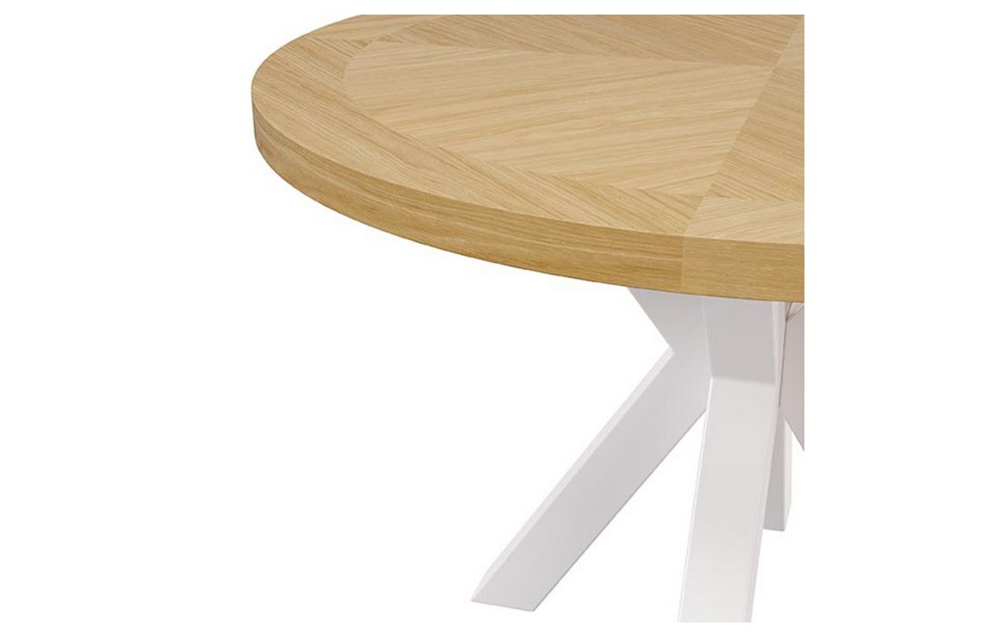 This table stands out for its contemporary and elegant design. The oak veneer top combines with the metal frame.It provides a modern and natural look. With the option of white and black metal legs, available in two sizes.