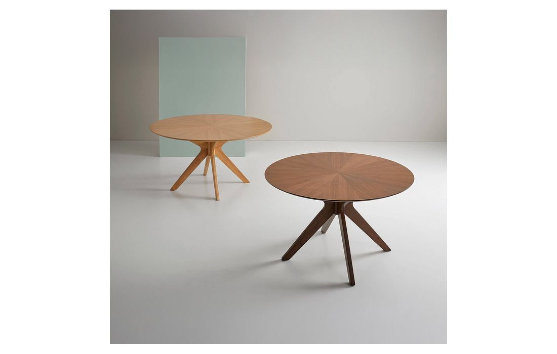 This table combines elegance and sophistication. This piece is made of solid wood, ensuring durability and a welcoming aesthetic. Available in walnut or oak finish and in two sizes.