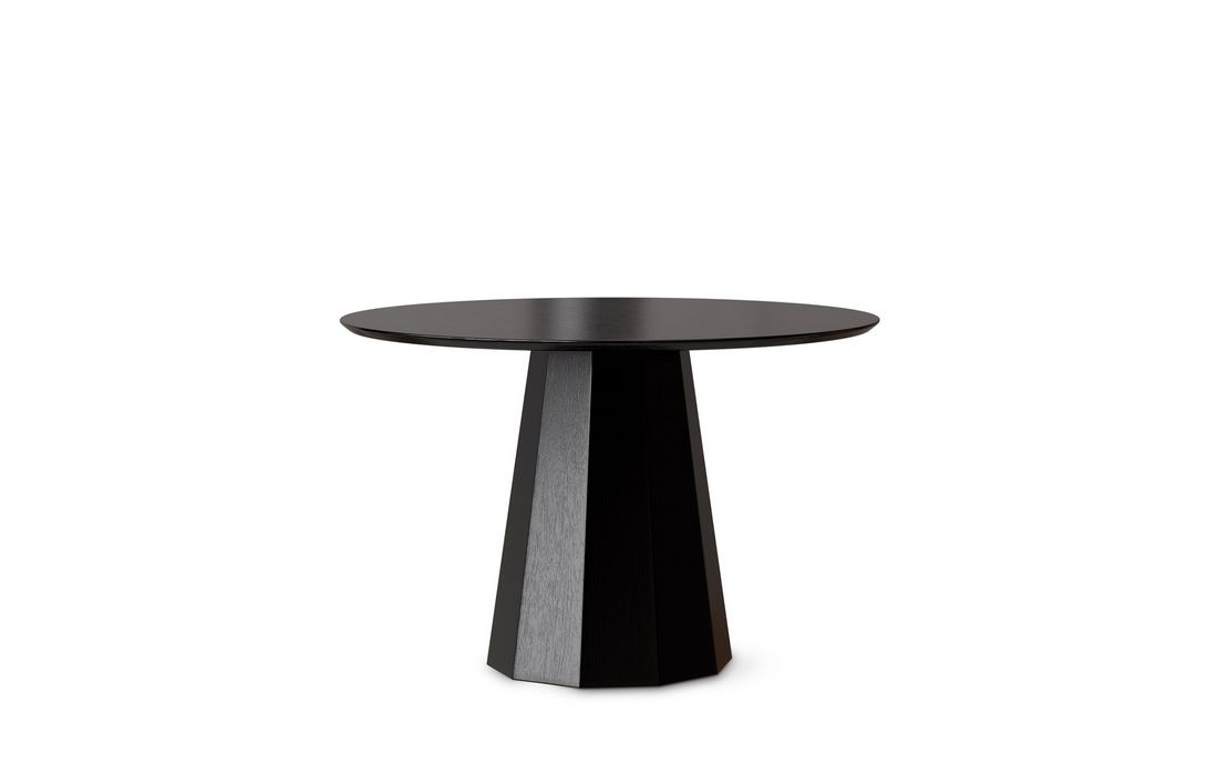 The table features an oak wood frame, distinguished by its elegant central leg. This table is ideal for any space. Available in natural oak or black finish.