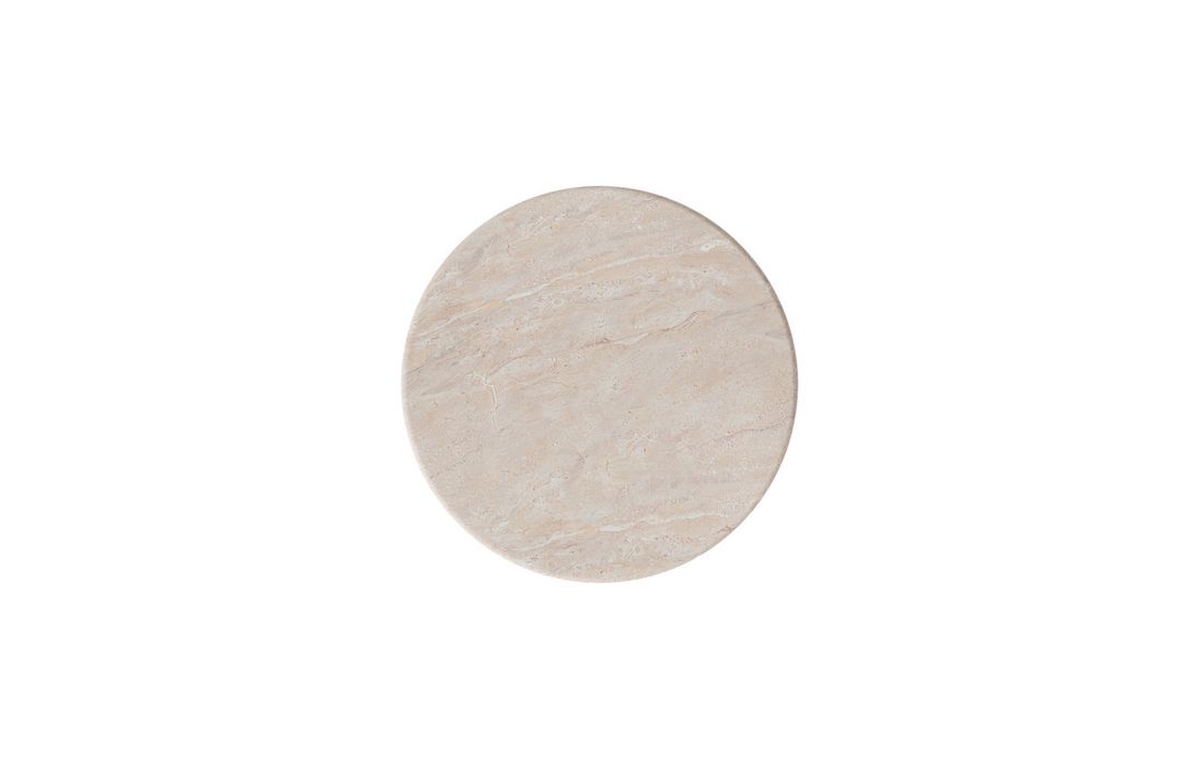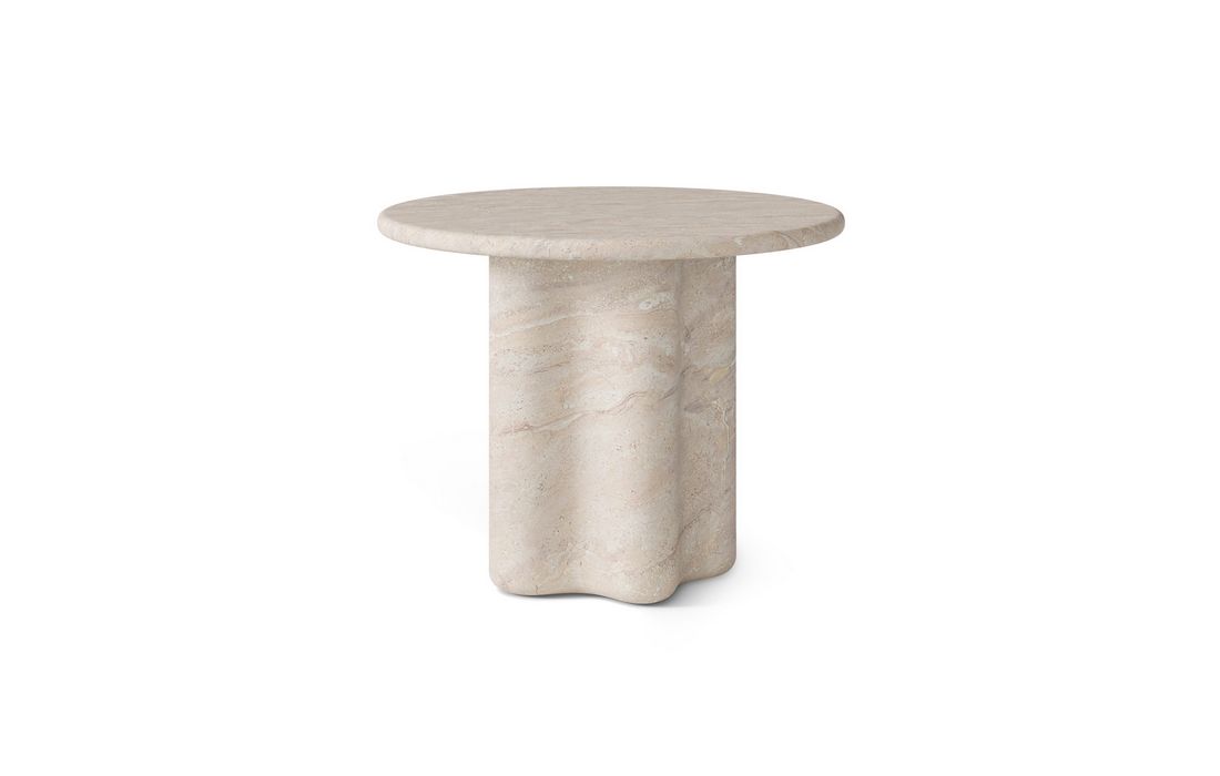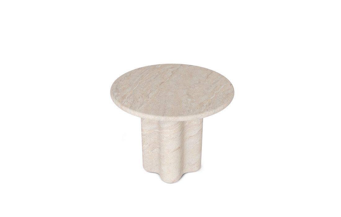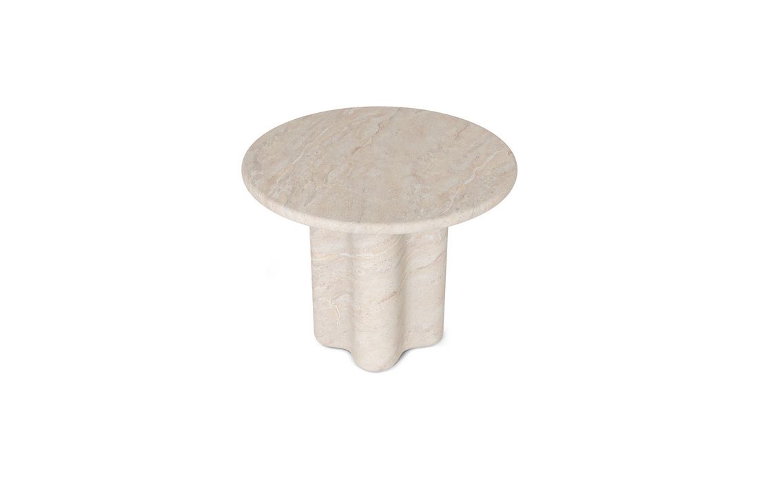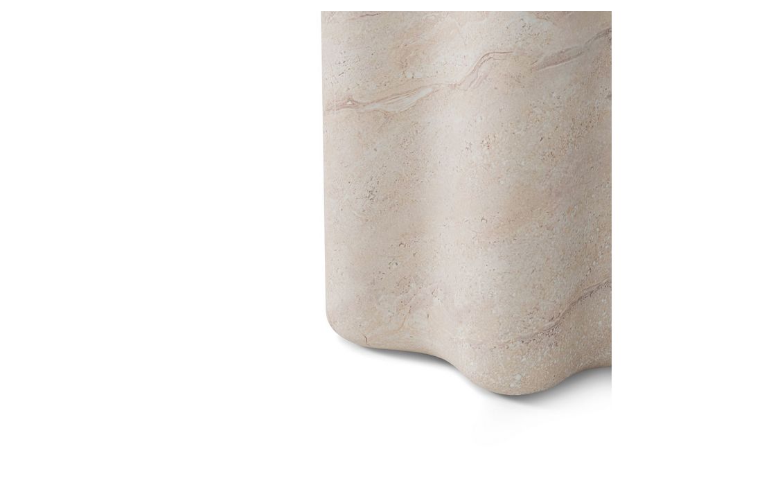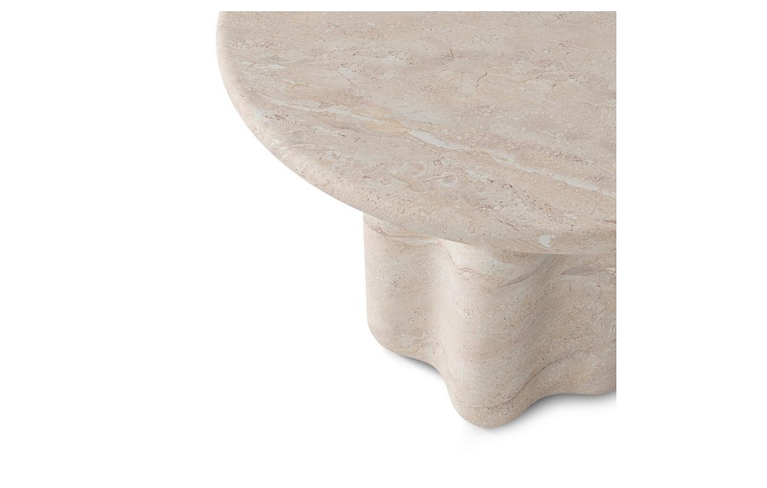 This table is a sculptural piece of contemporary design, entirely made of fiberglass-reinforced GFRC cement with a sophisticated travertine marble finish. Available in 2 sizes.