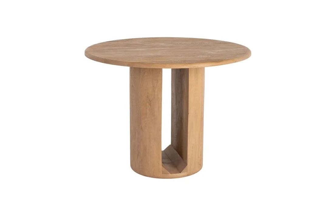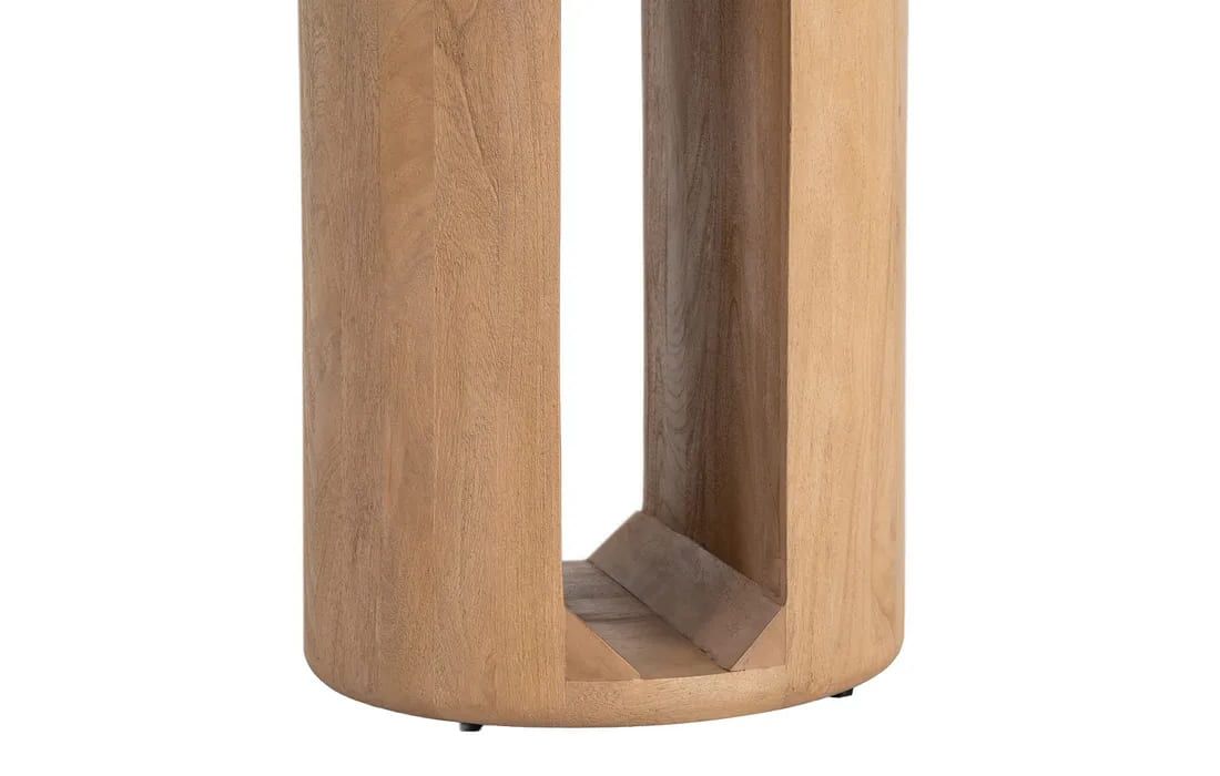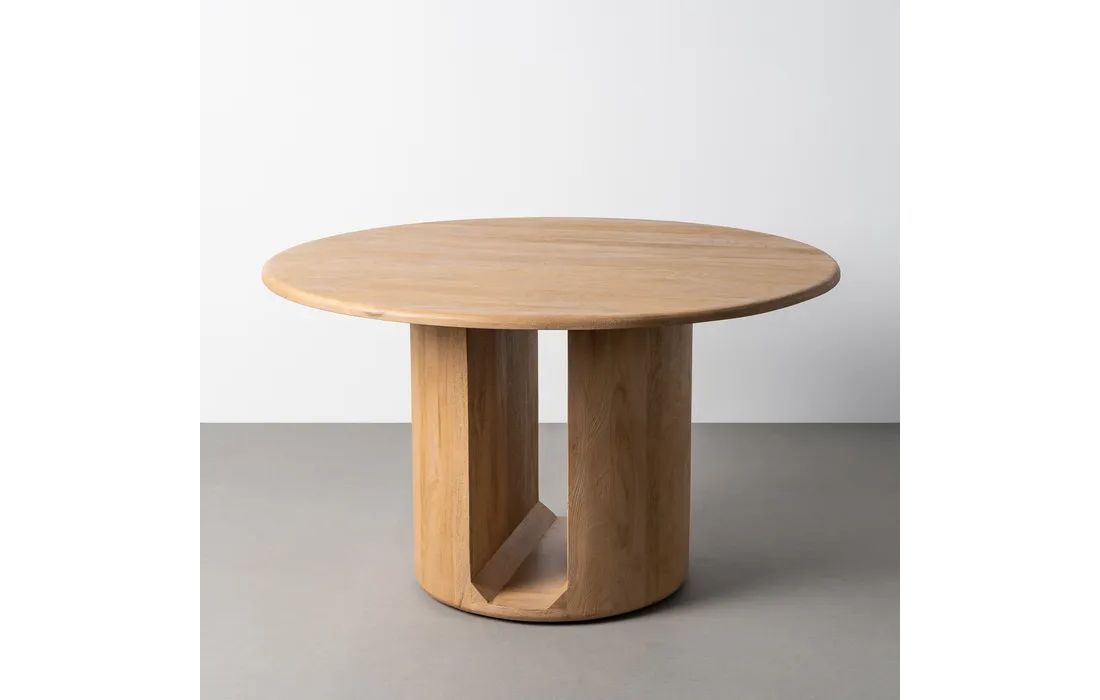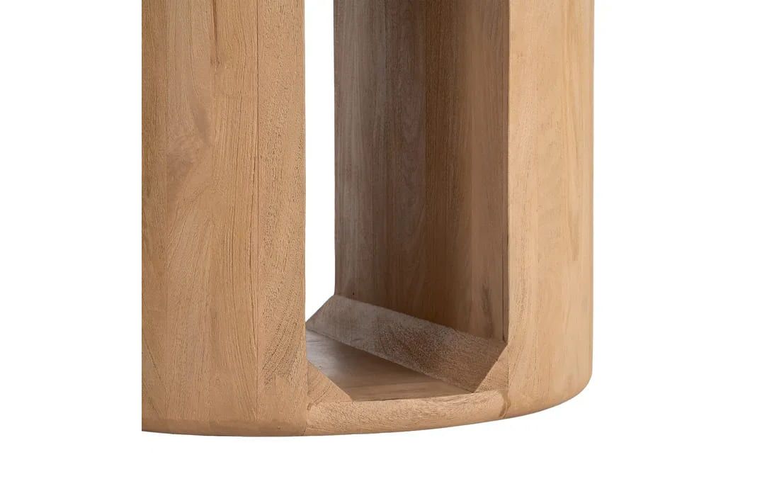 The DUO table combines the natural beauty of mango wood with a modern and balanced design.With a round top and a base composed of two cylindrical elements, it stands out for its minimalist and contemporary aesthetic. Available in two sizes.