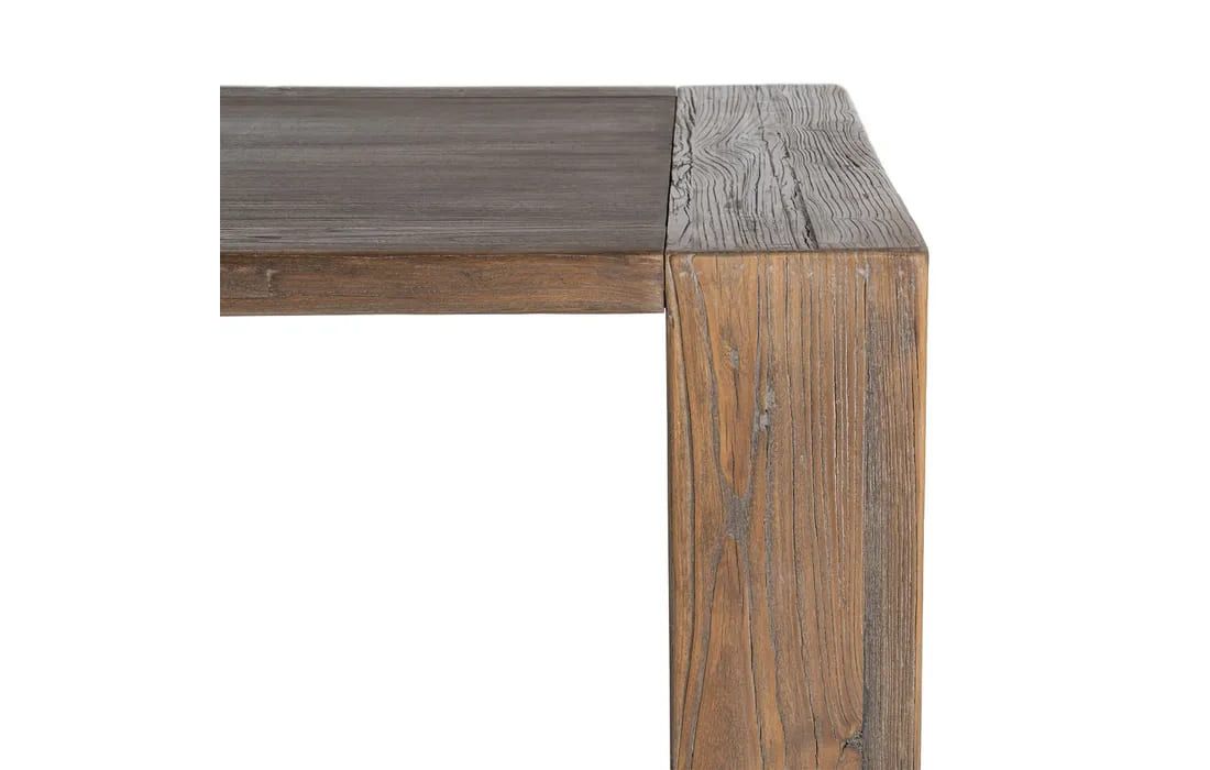This dining table, crafted from elm wood, stands out for its simple elegance and the authentic beauty of the wood.Made from high-quality wood, it features expressive grain and soft tones that lend a natural and welcoming feel.