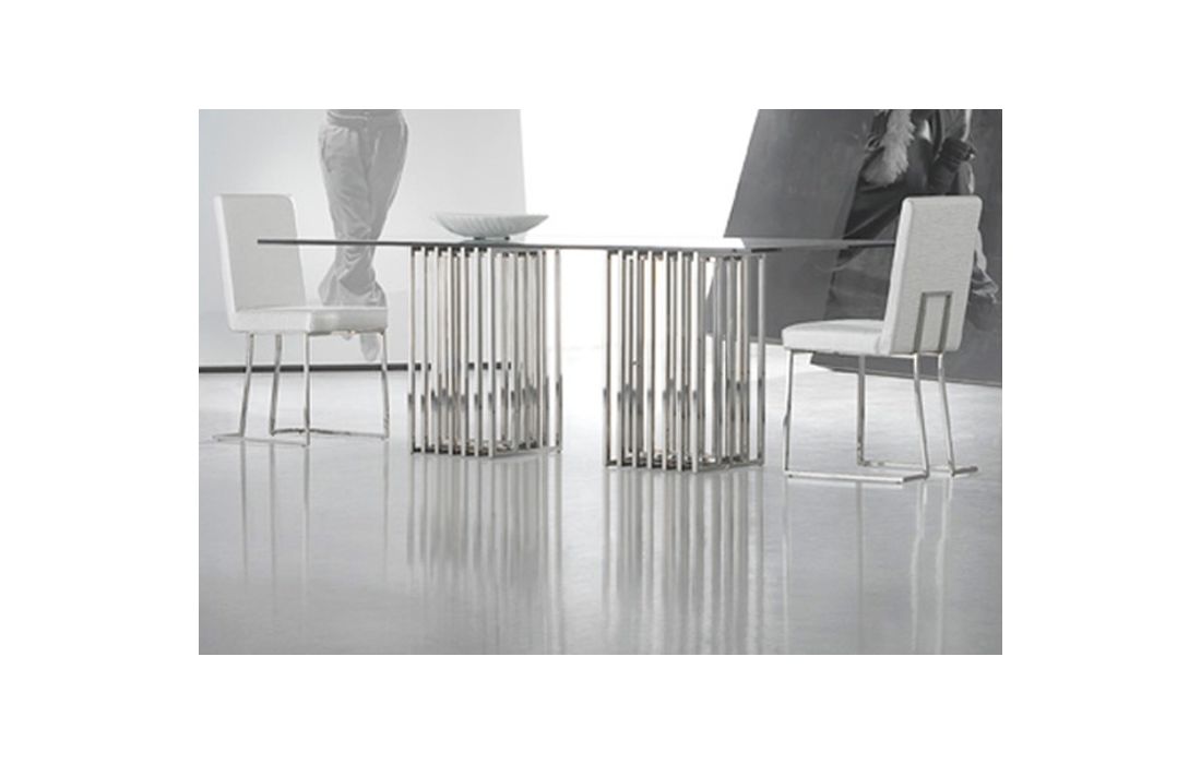 | Dining room with feet in stainless polished with glass top | ||||||||