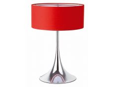Floor lamp with chromed metal base and red lamp.