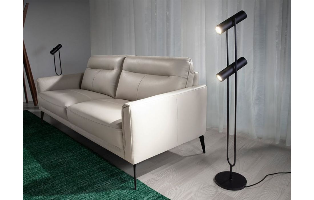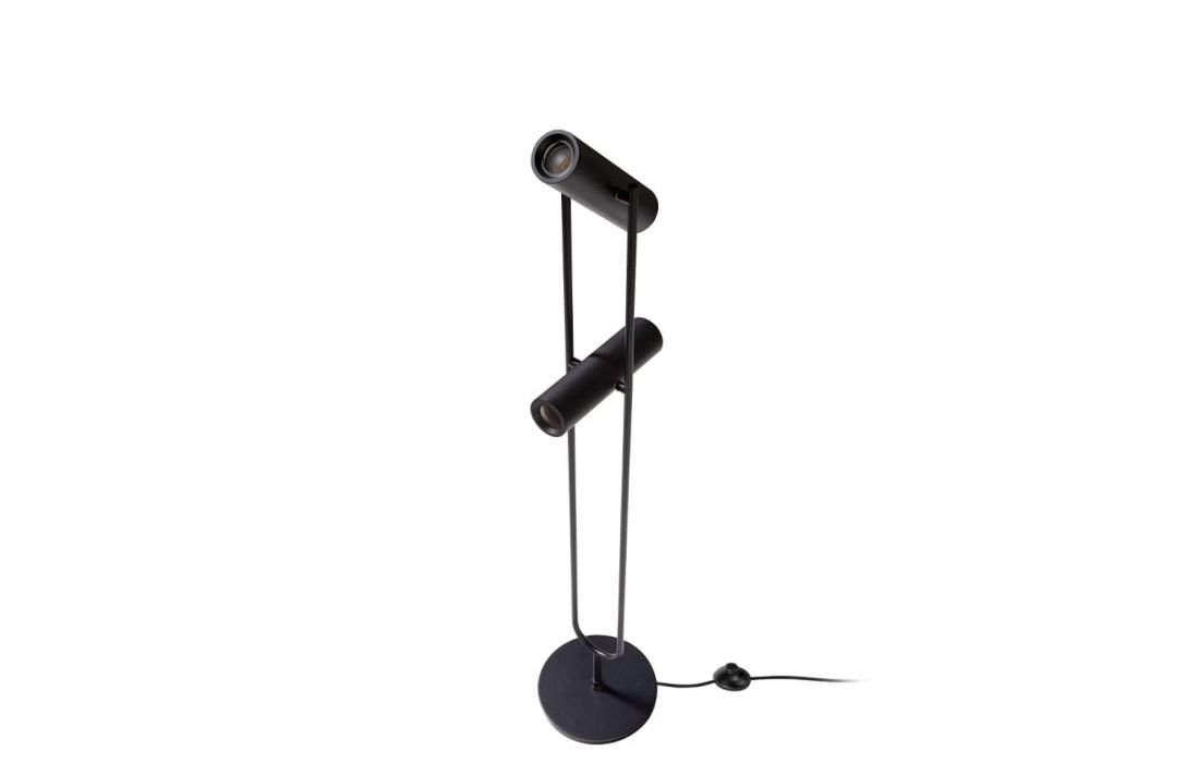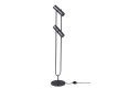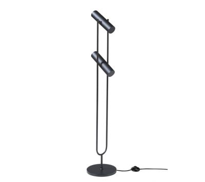 Floor lamp in black stainless steel with two adjustable spotlights.