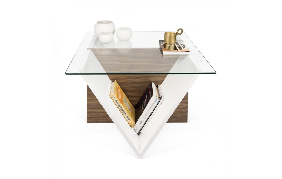 Coffee table its originality comes from accentuated geometric shapes, which give it a diagonal storage feature, ideal for magazines.