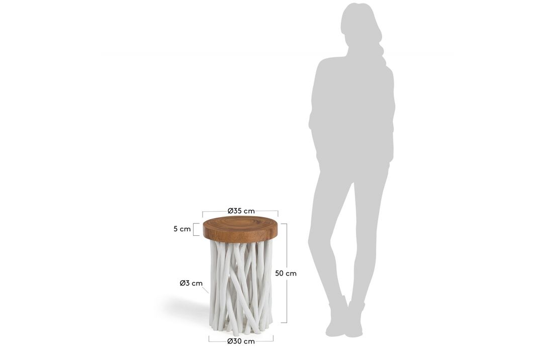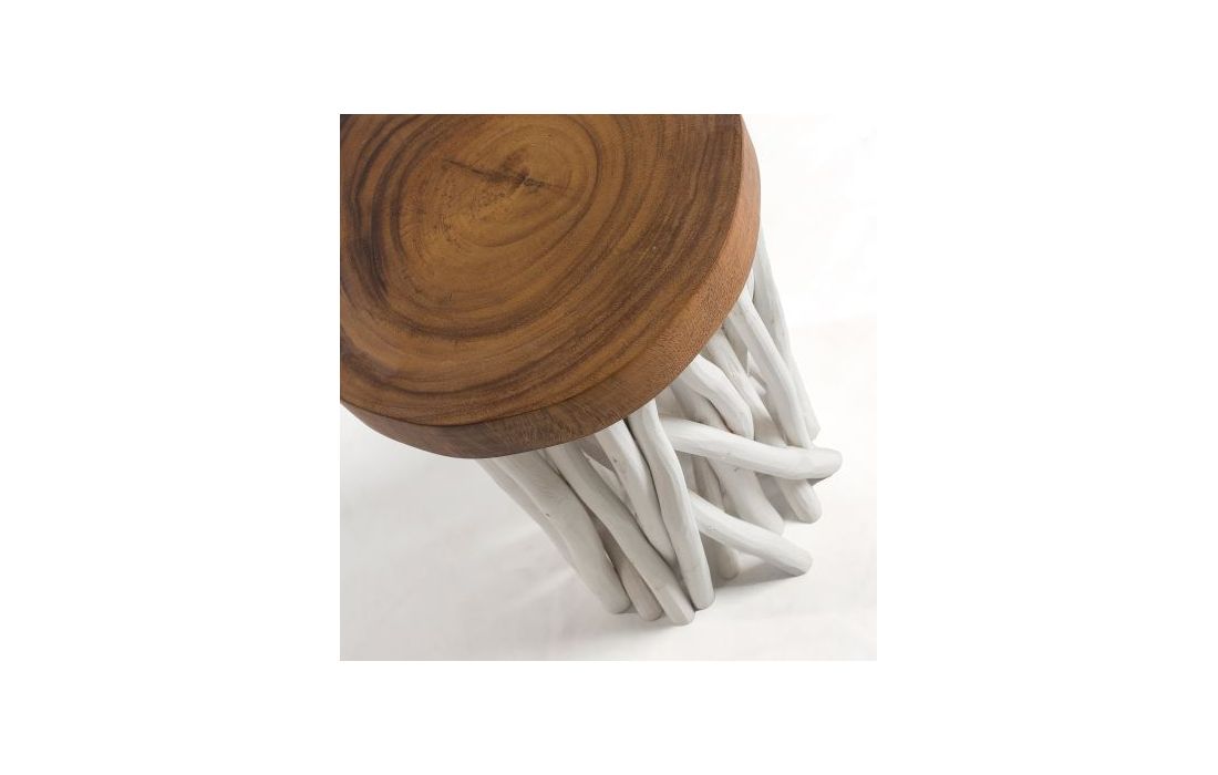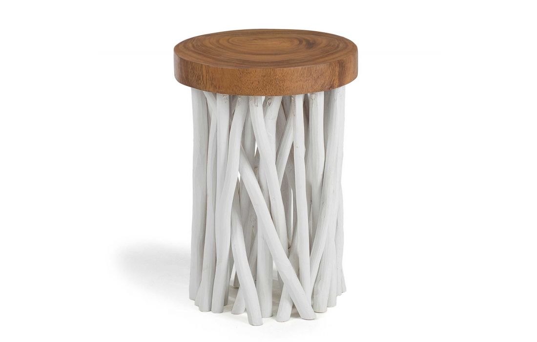 Coffee table with feet of tropical wood branches white and top in munguba wood