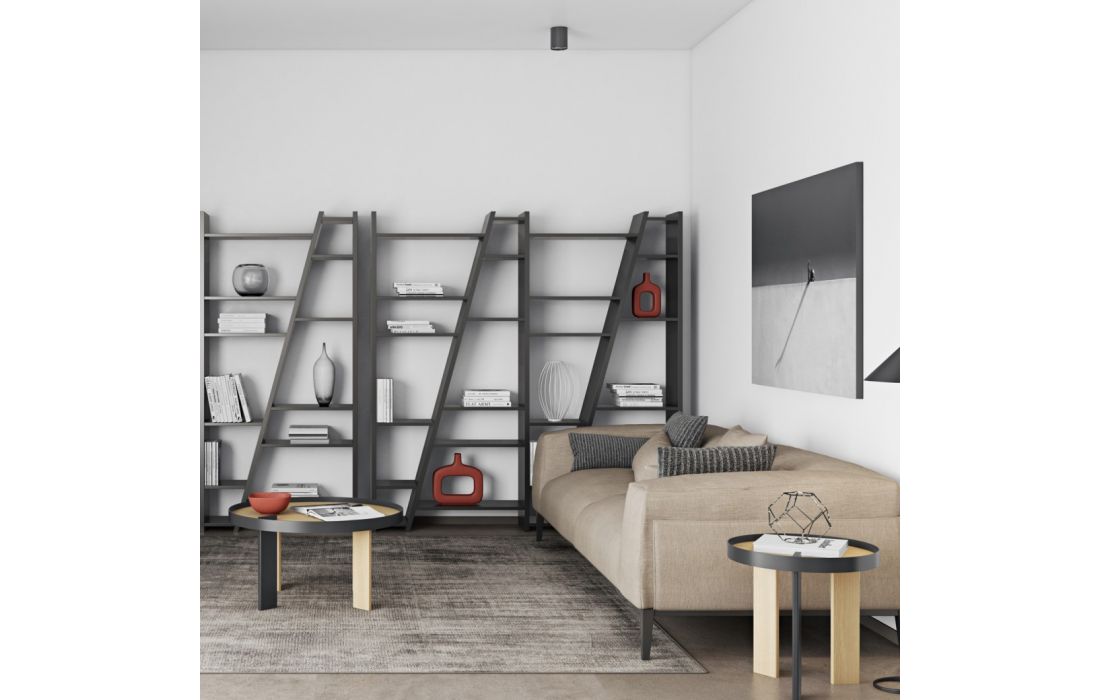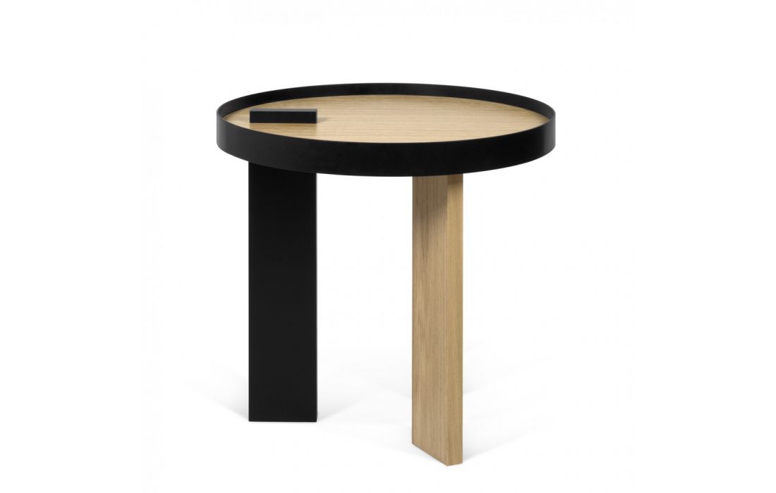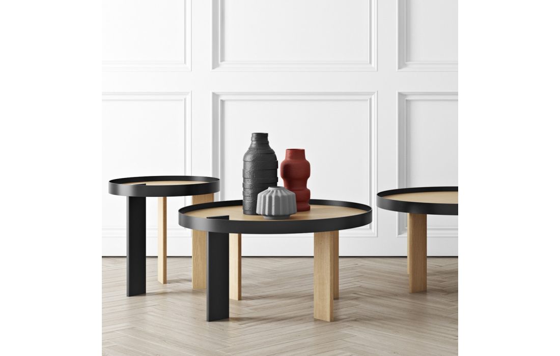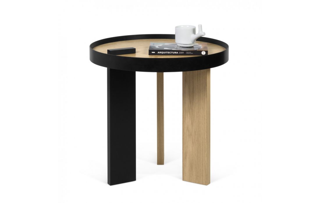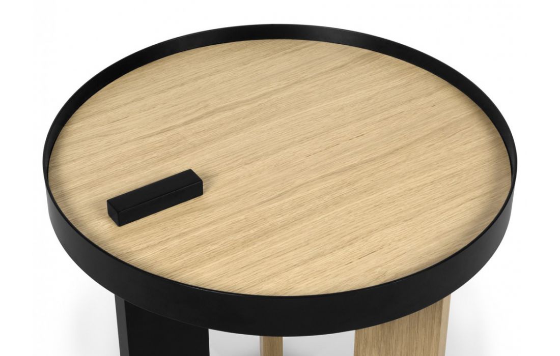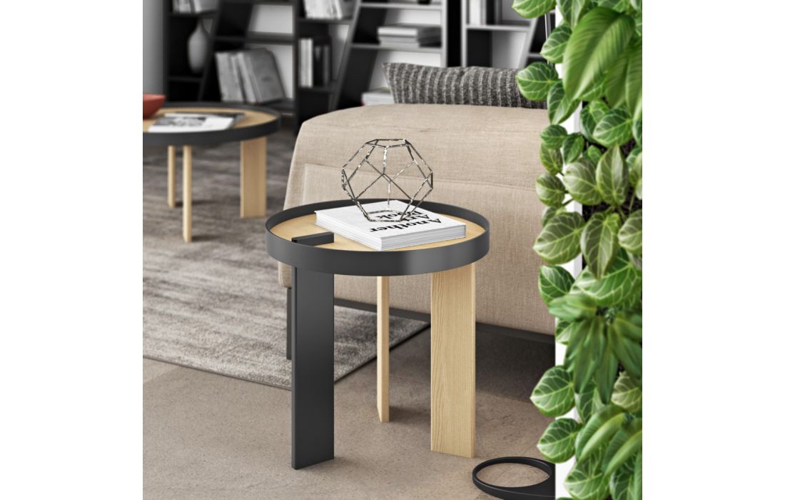 Coffee table with contrast between the black leg and the metallic structure of the same color, with the veneered oak of the remaining piece, further accentuates its look, to make its environment even more beautiful.
