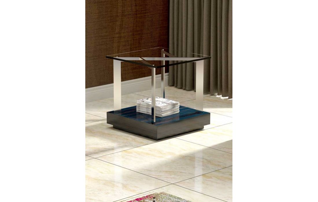 Side table with glass top and metallic detail