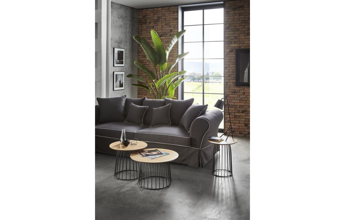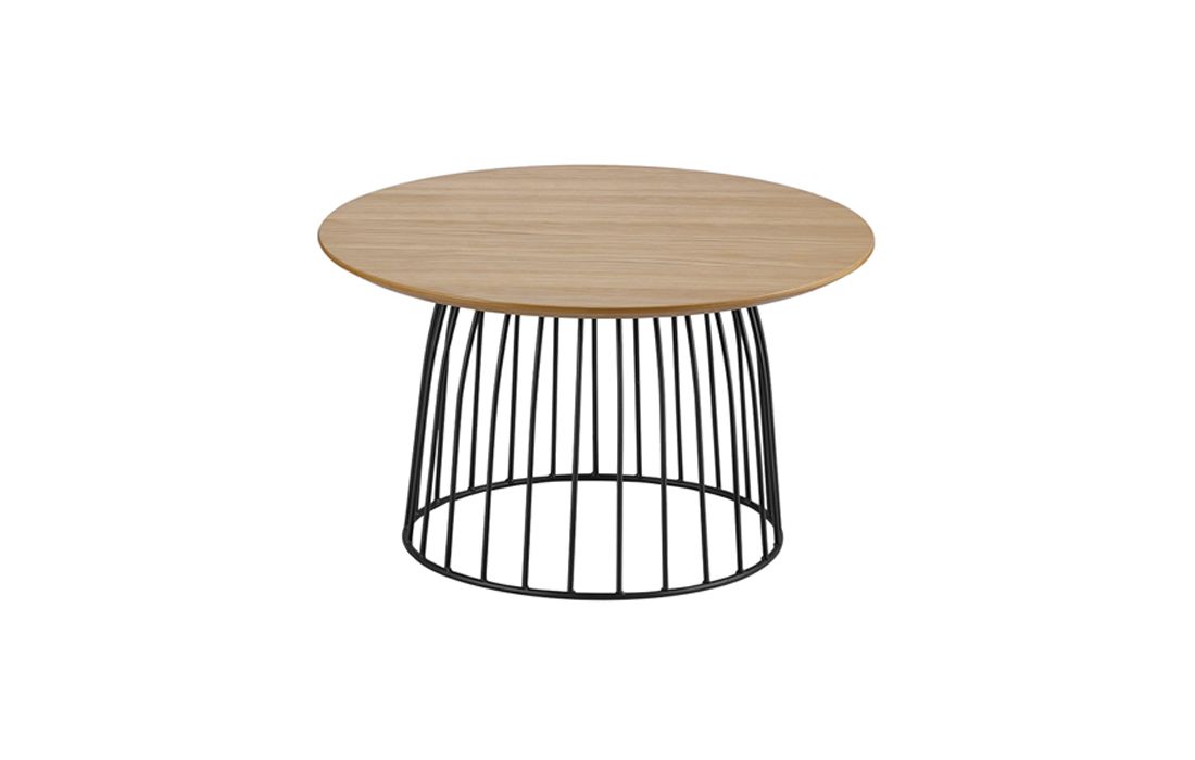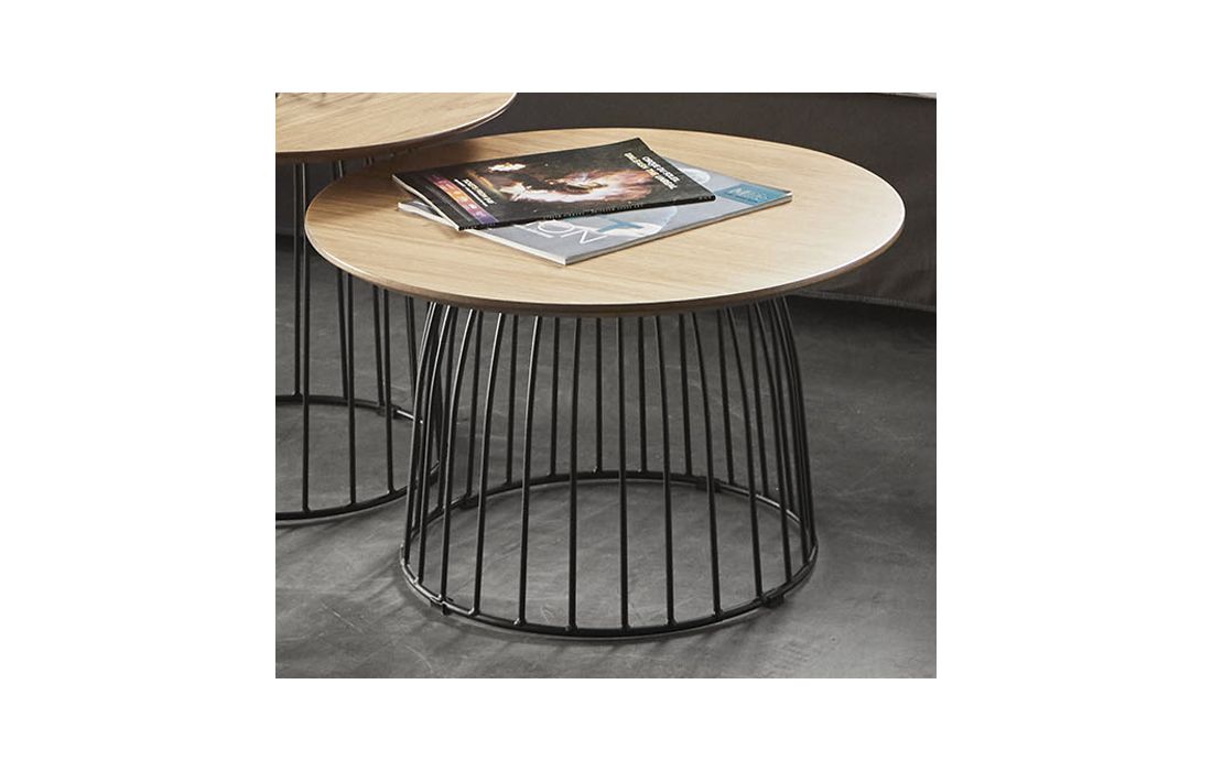 Support table in oak with black metallic base.