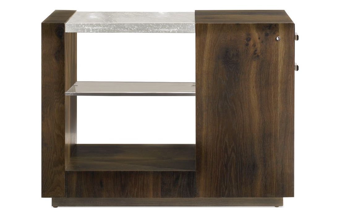 Wood support table with two glass shelves