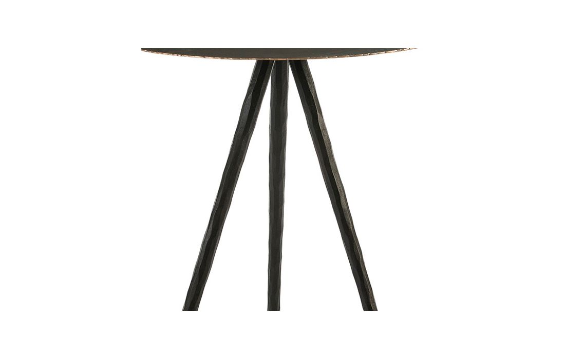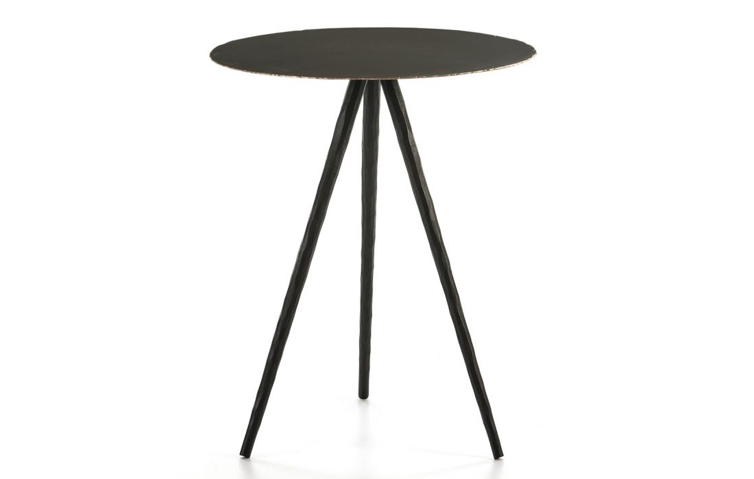 Support table round with structure in black metal.