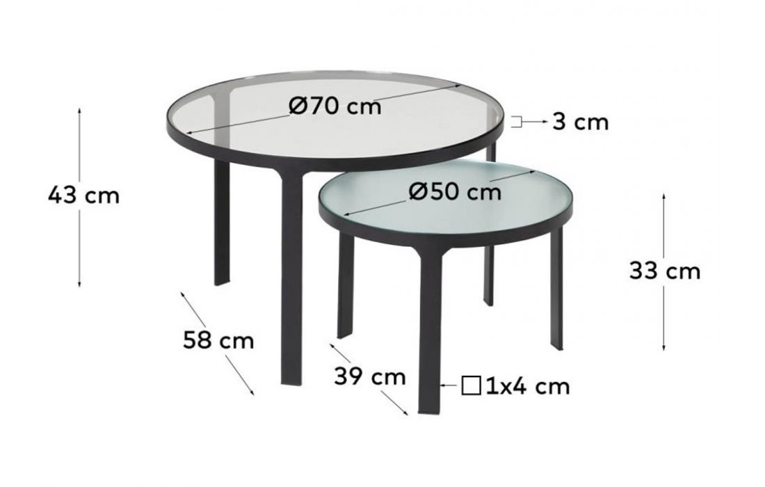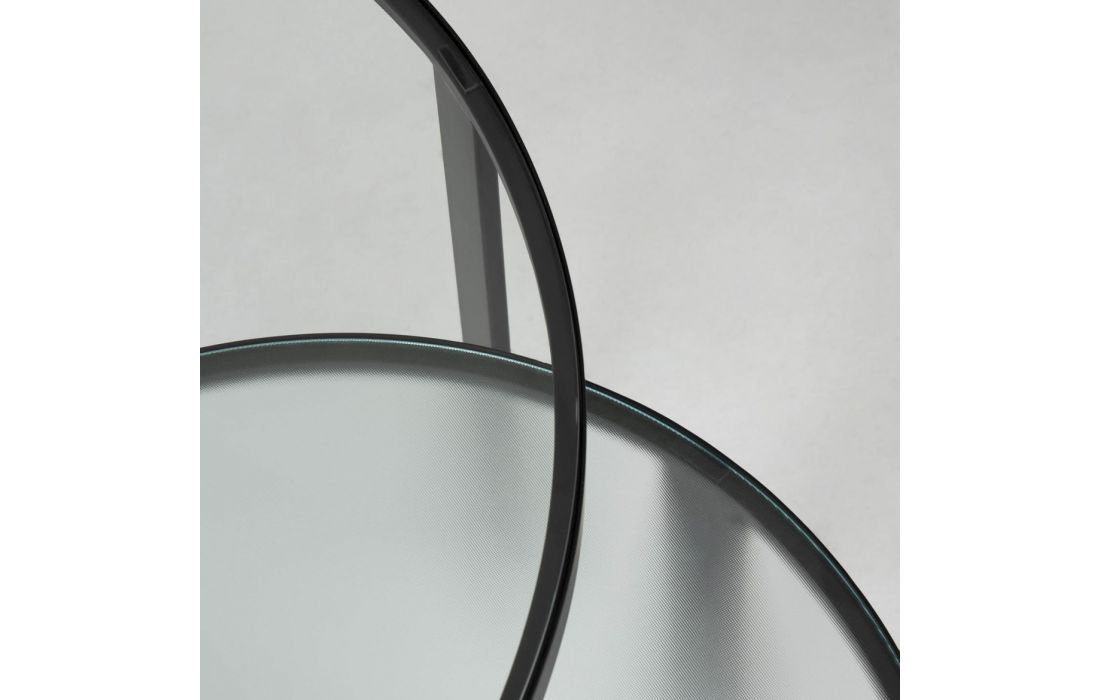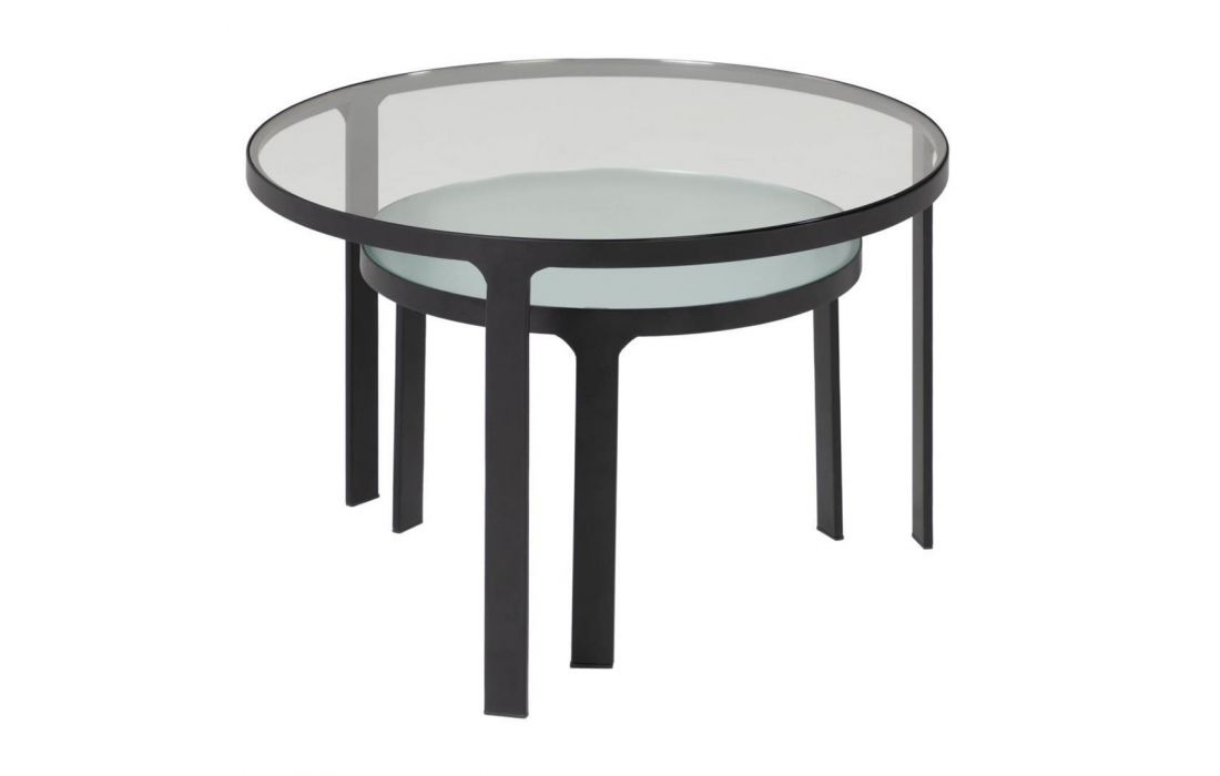 Set of 2 side tables made of black steel and tempered glass top.