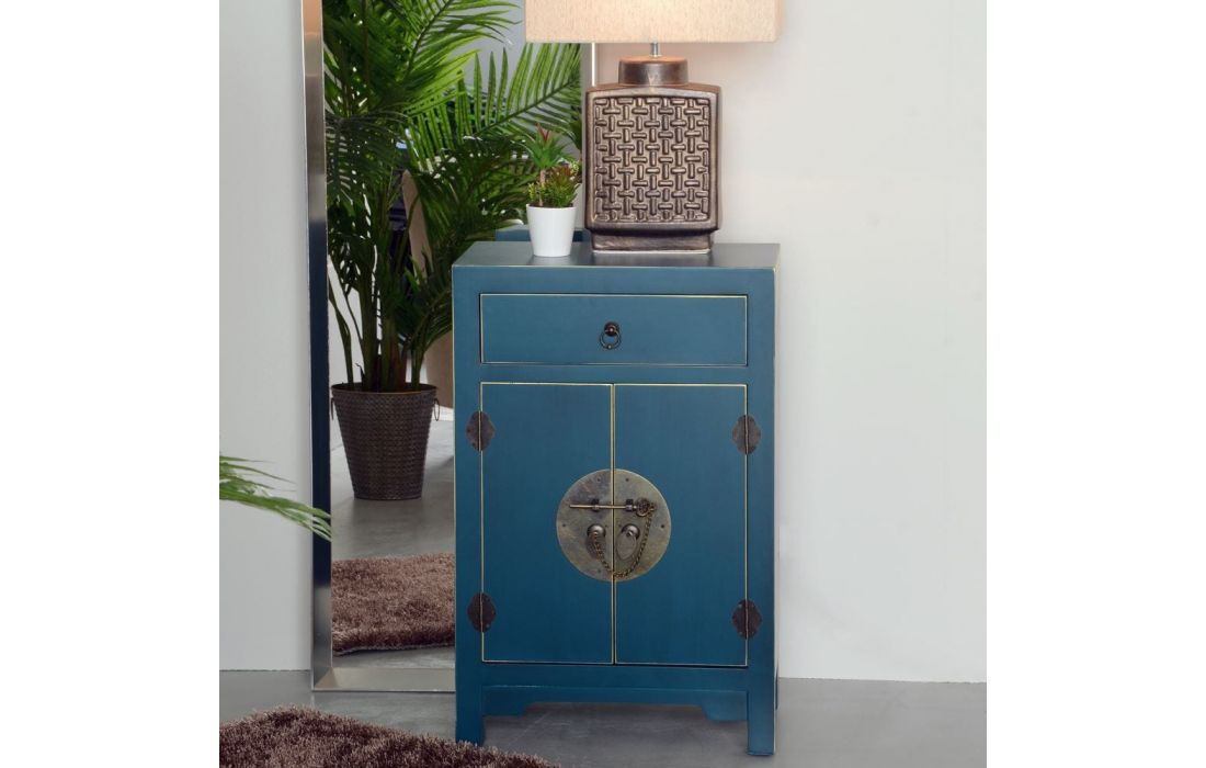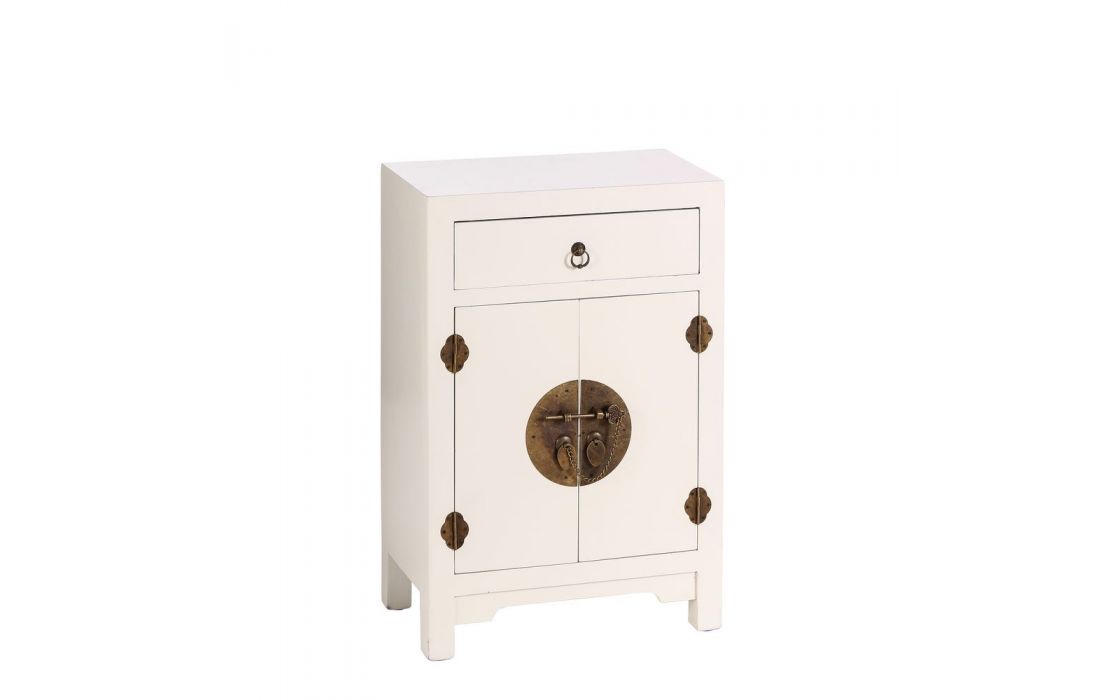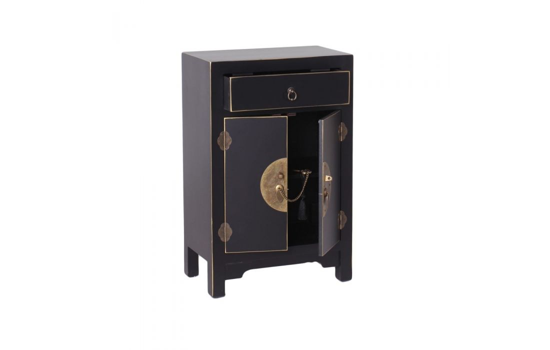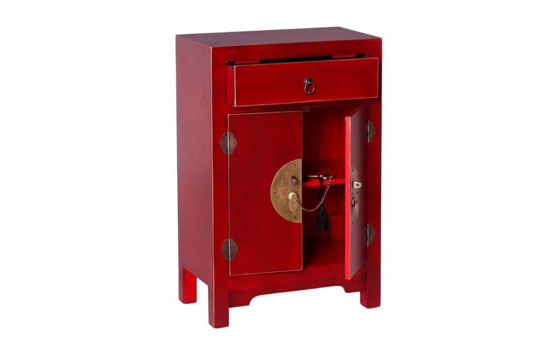 MDF Support table w / 2 doors and 1 drawer and gold metal handles available in 4 colors, black, white, red and blue.