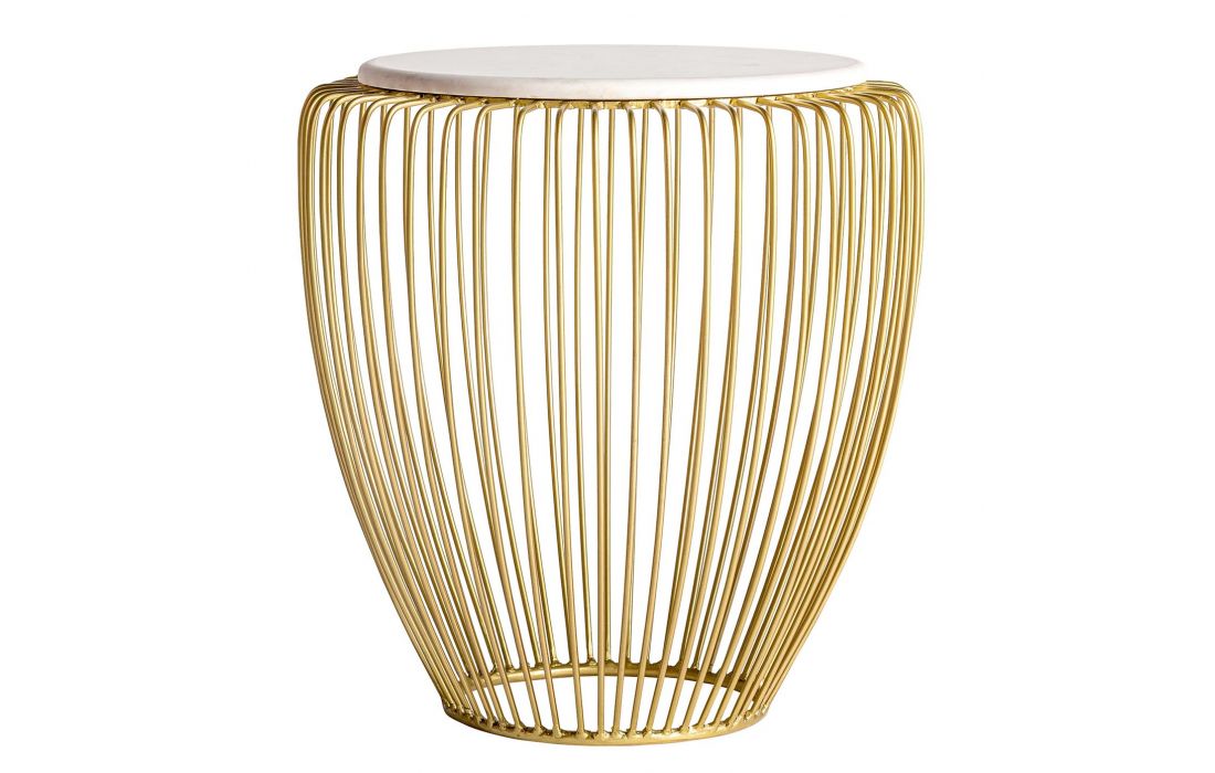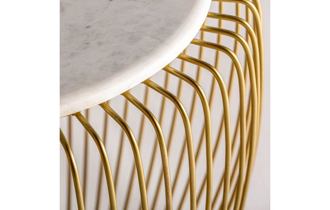 Support table with golden iron structure and white marble top