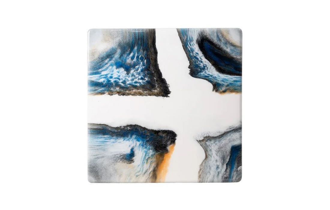 Supprt table in black metal and top in 15mm multicolor resin cement