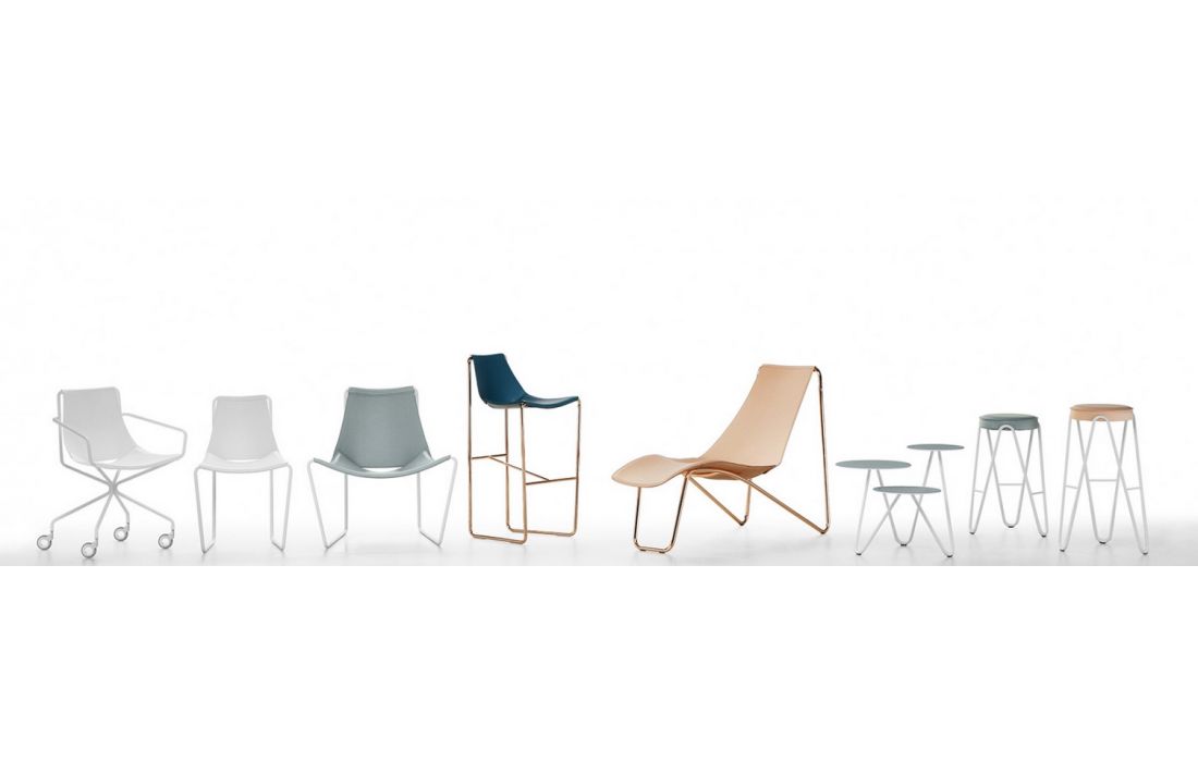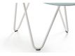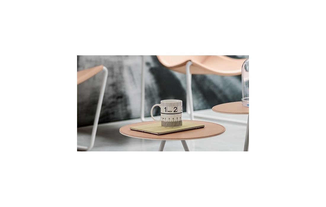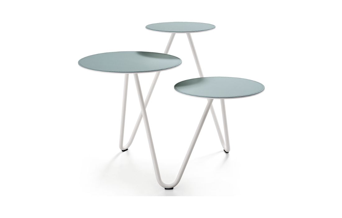 Side table with structure in matt or glossy lacquered metal. Top in ceramic or upholstered in leather.