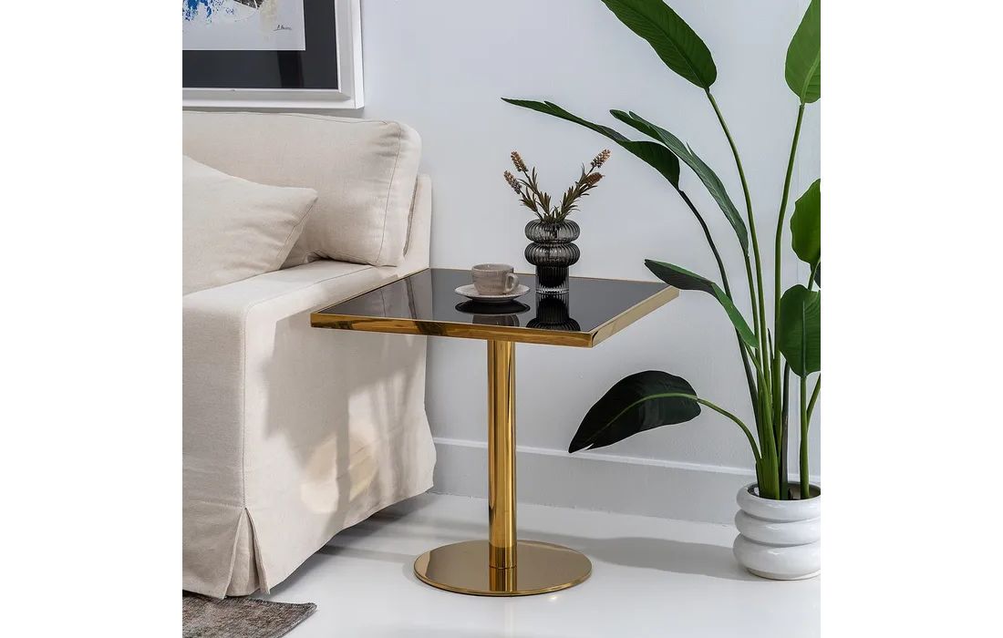 Support table with 6mm tempered crystal top and golden stainless steel base