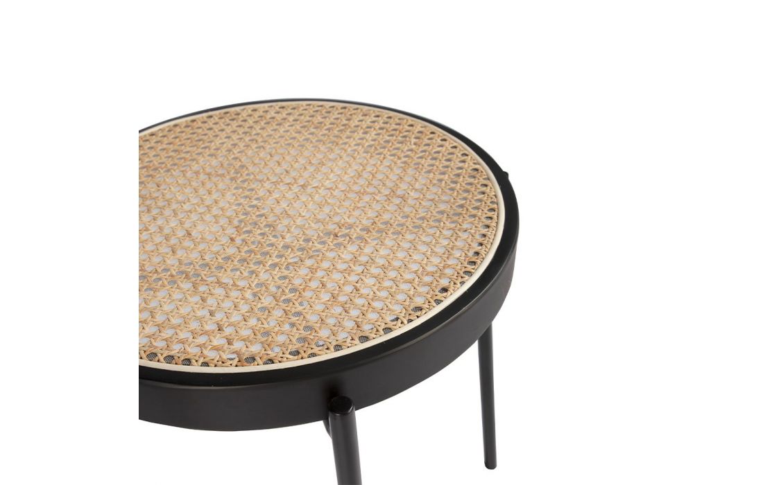 Modern design side table made of MDF, an elegant rattan top and stainless steel legsRecipient :