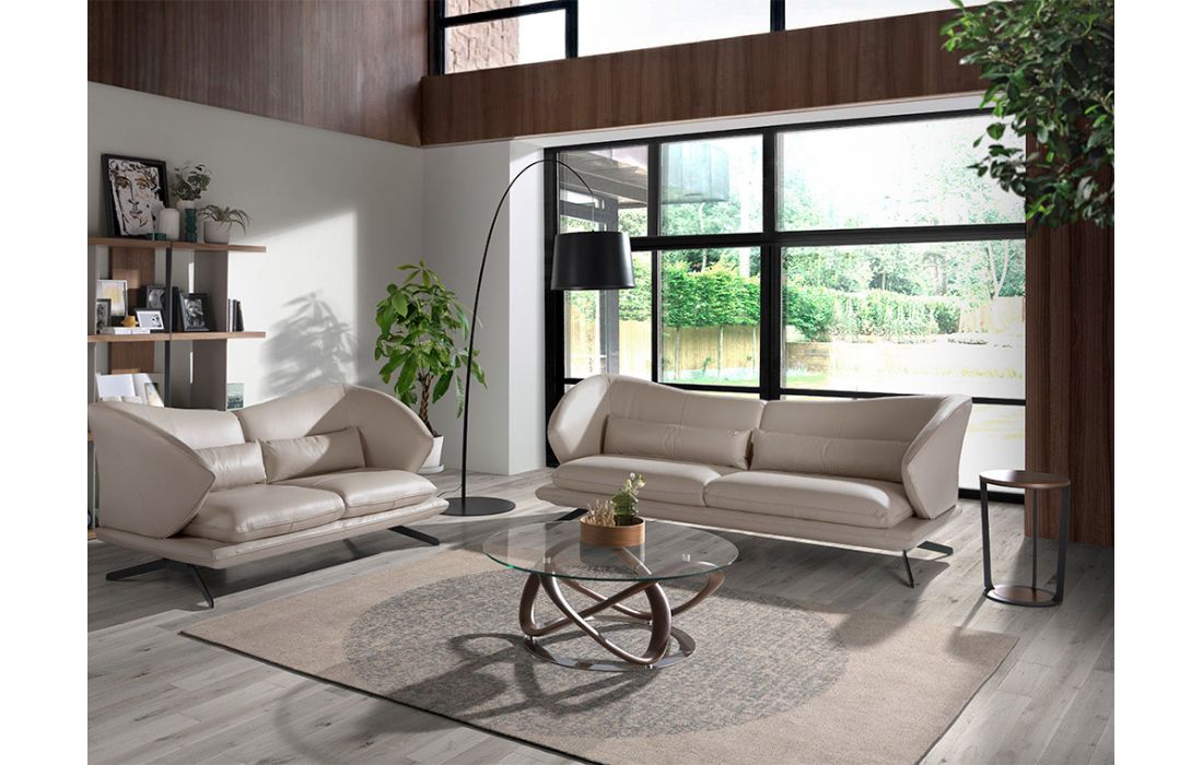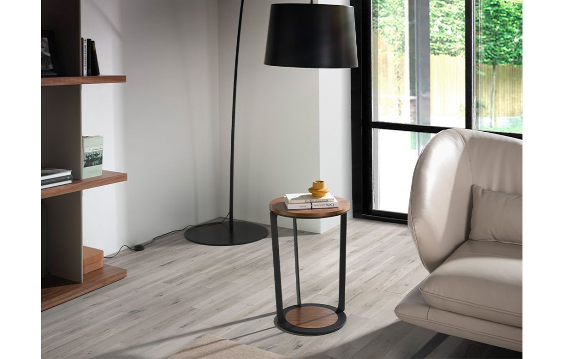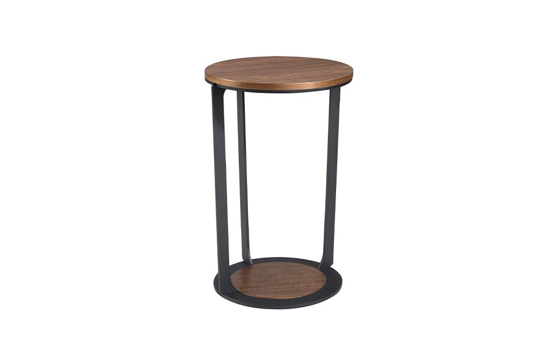 Modern round side table with natural walnut veneer top and stainless steel legsRecipient :