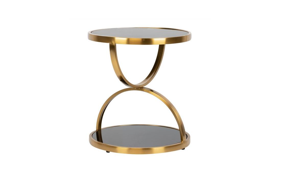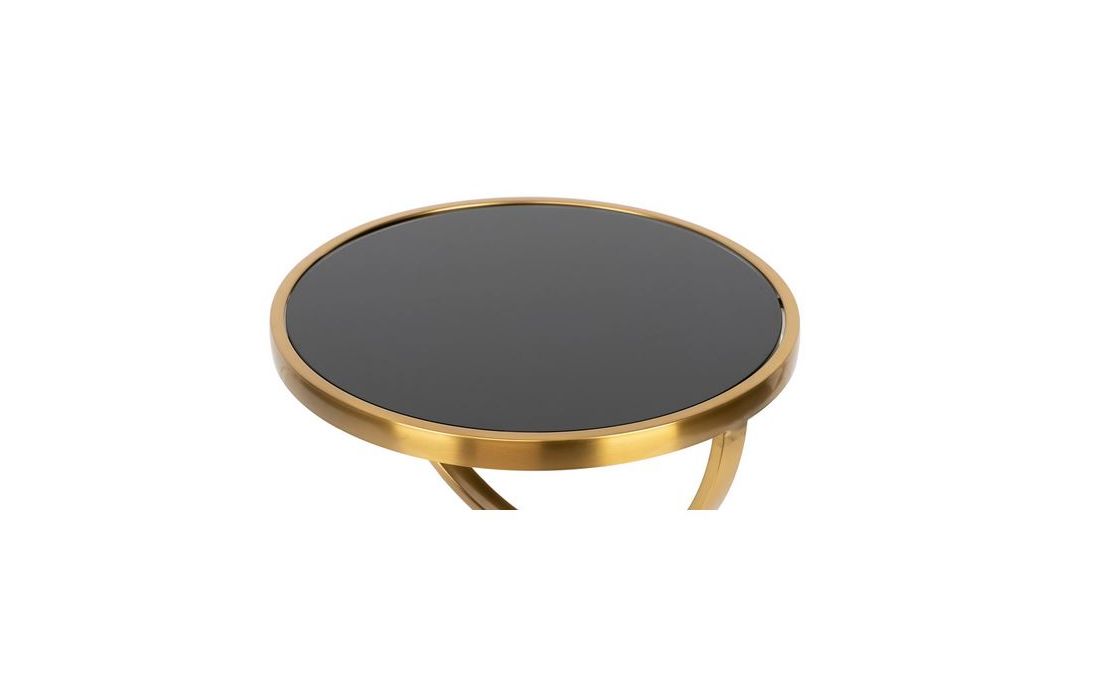 Gold painted stainless steel table with black top