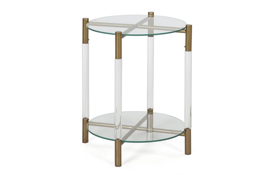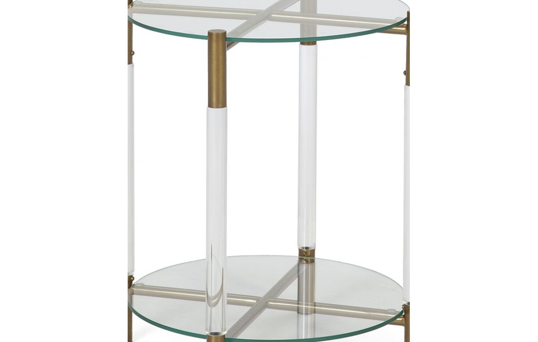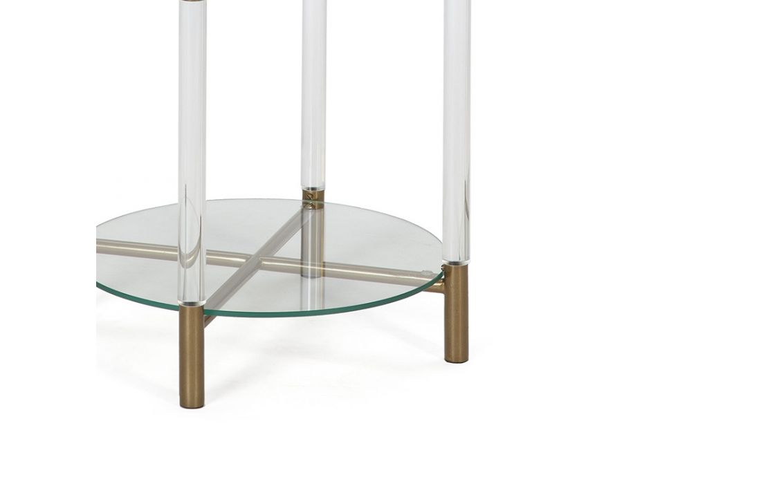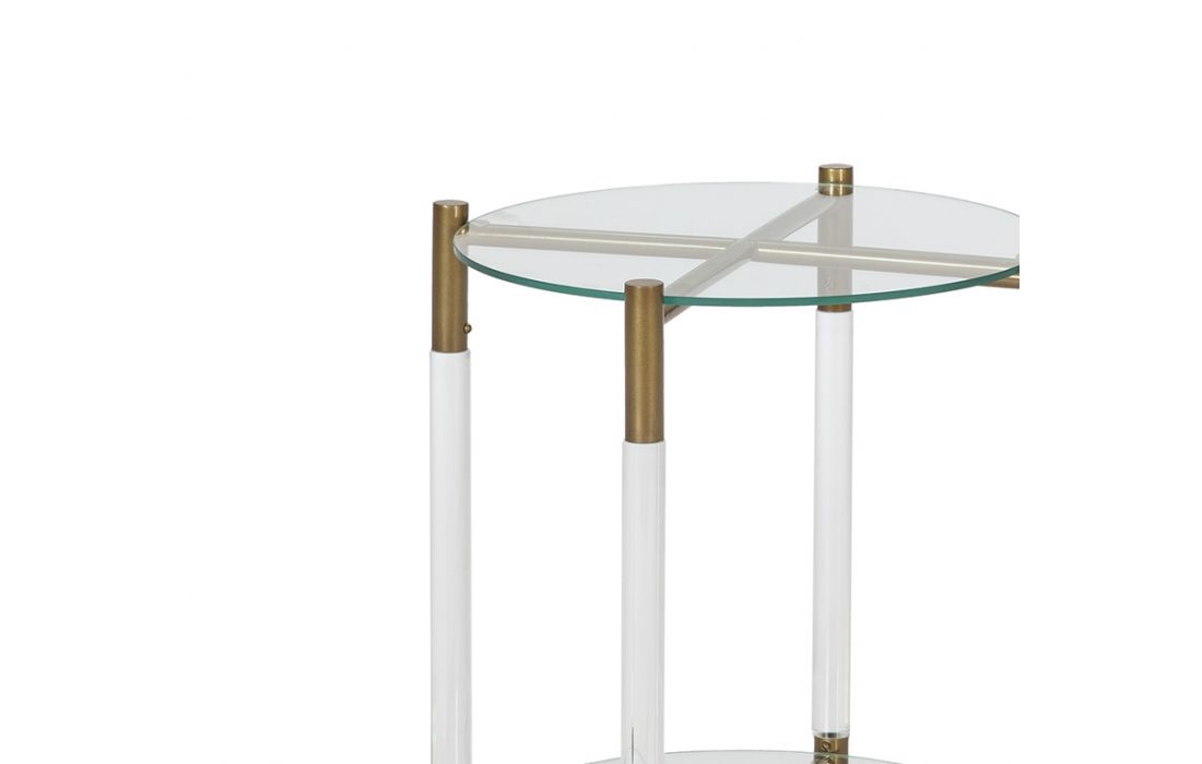 Support table with acrylic/gold metal frame and glass tops