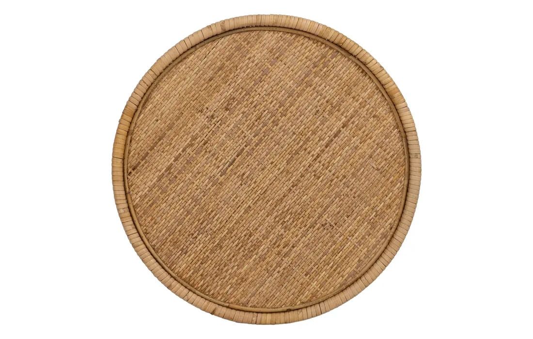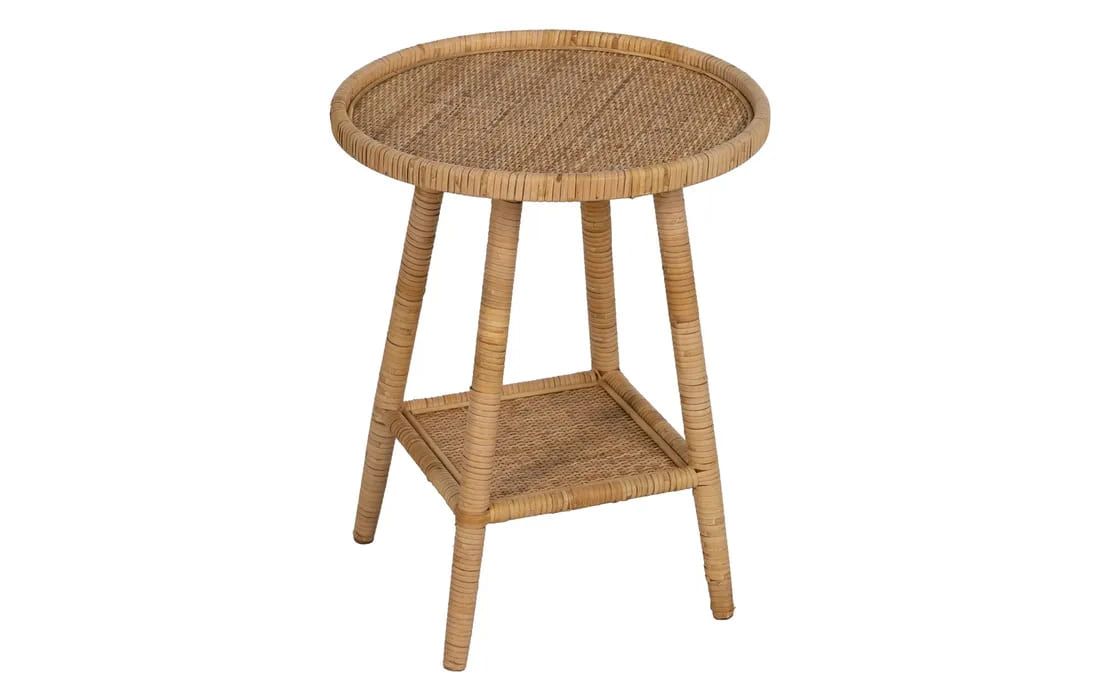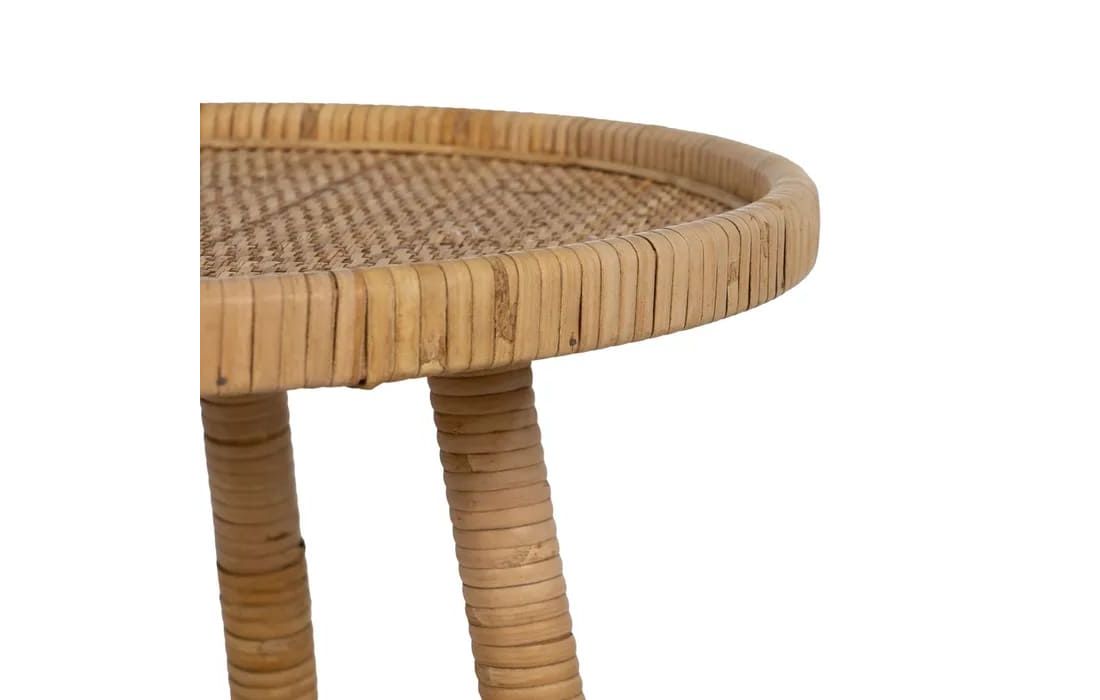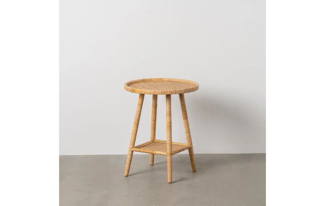 Support table with rattan structure in natural color.
