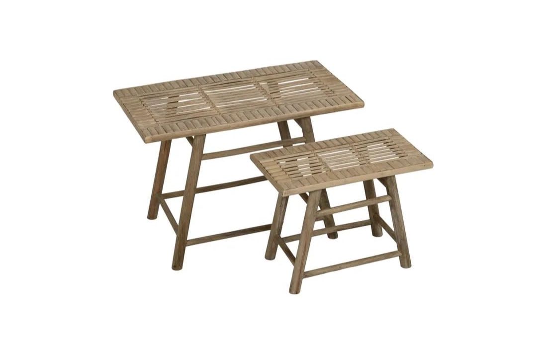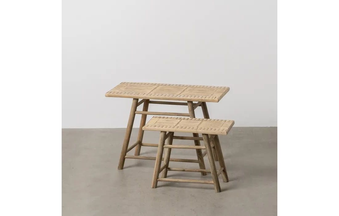 Set of 2 support tables with bamboo structure in natural color.