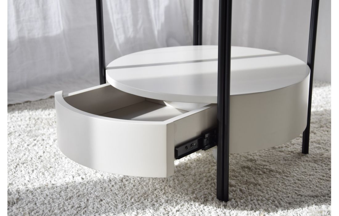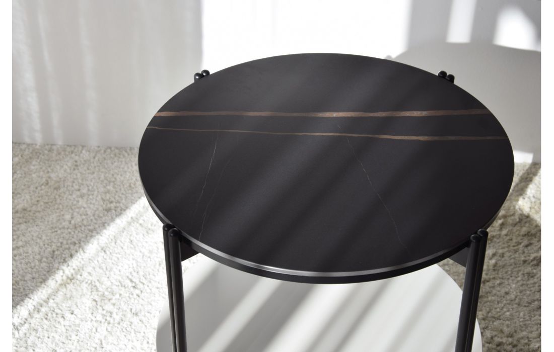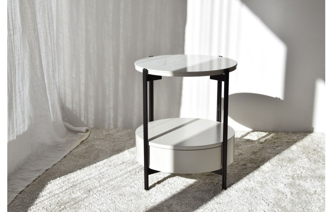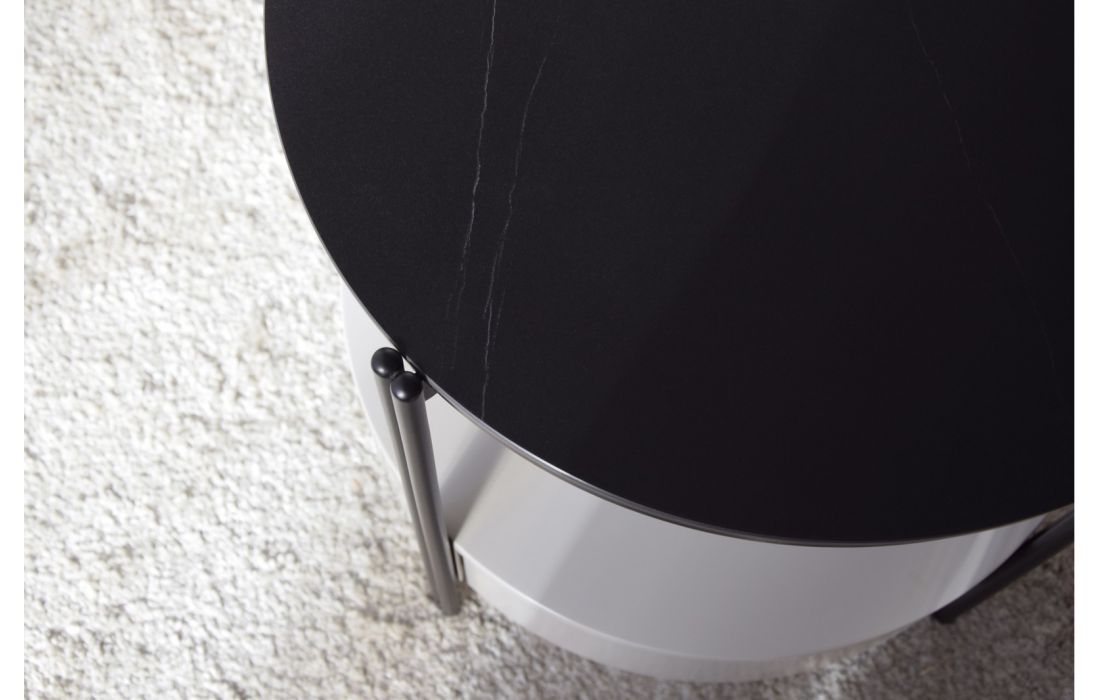Side table with ceramic and stone top, lacquered at the bottom. Metal legs with 1 drawer.Recipient :