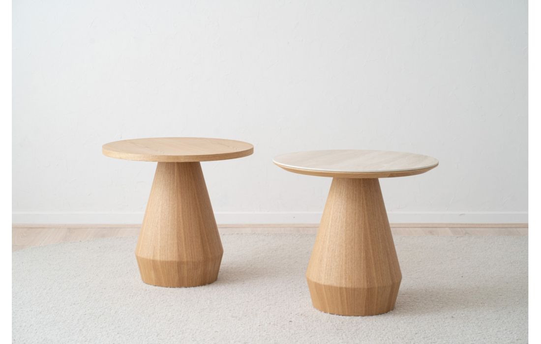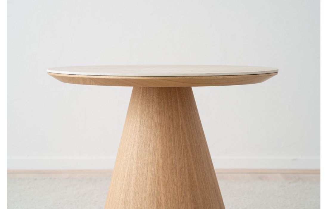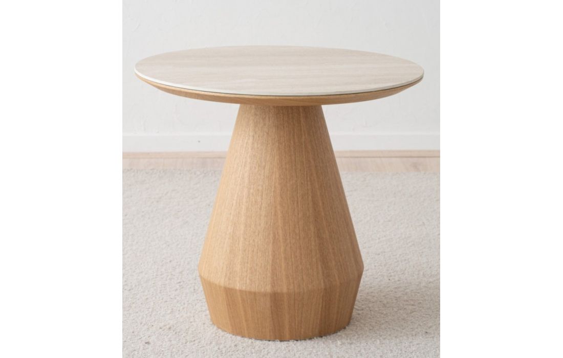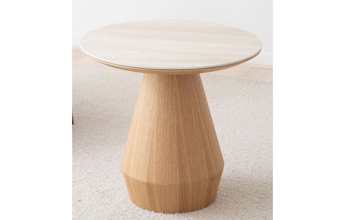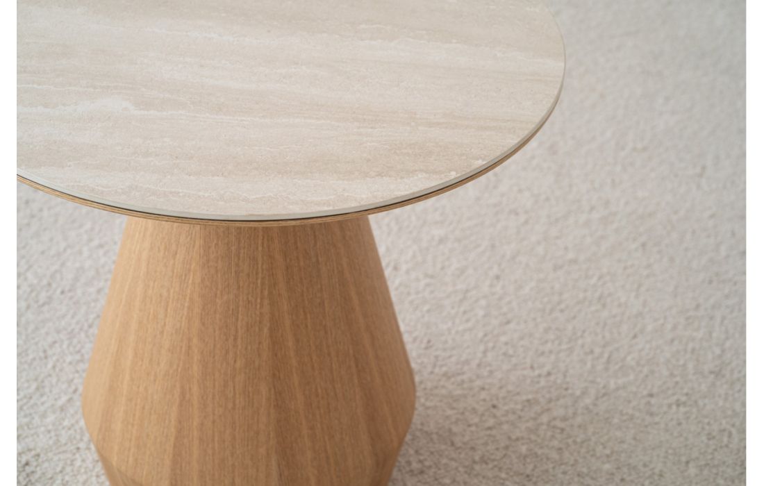 Side table made of ash wood with a slightly textured beige tarvertine ceramic topDimensions in cm