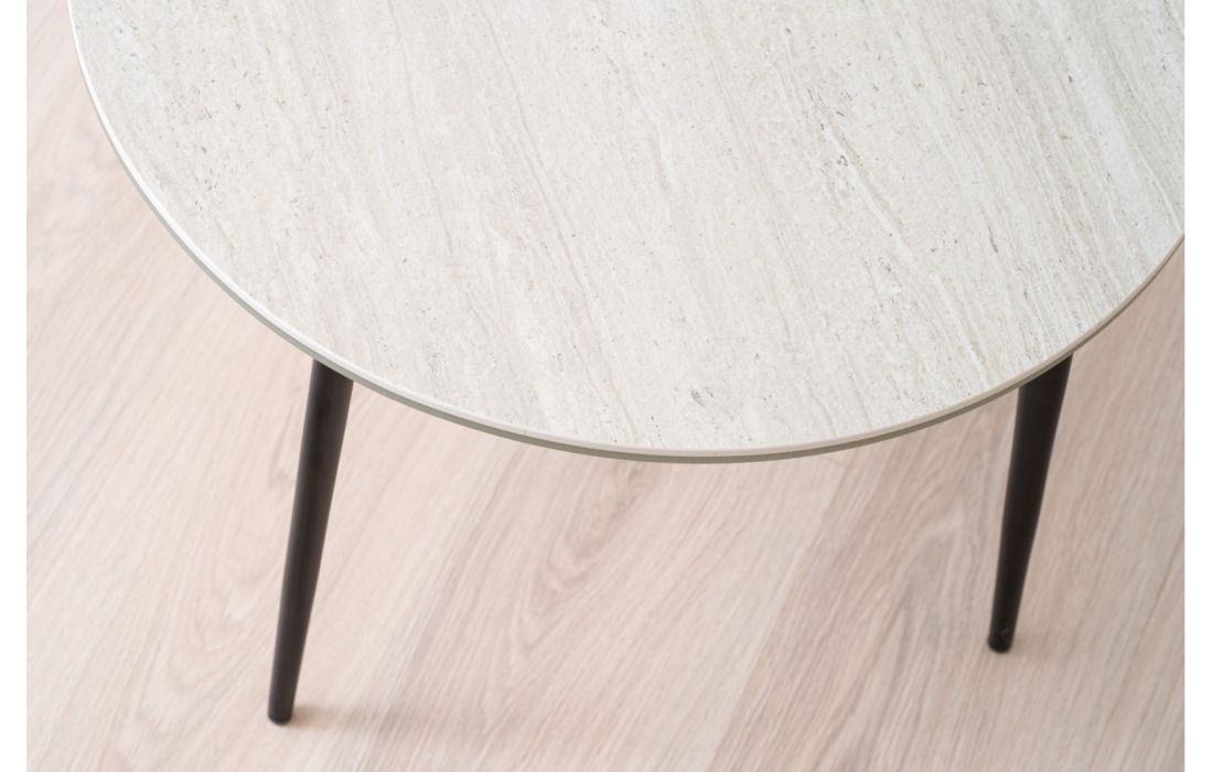 Side table with textured matte gray ceramic top and matte black metal legsRecipient :