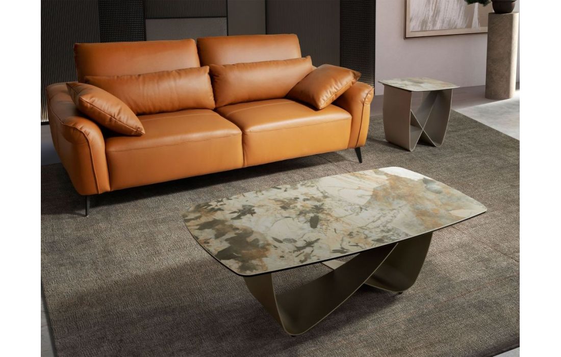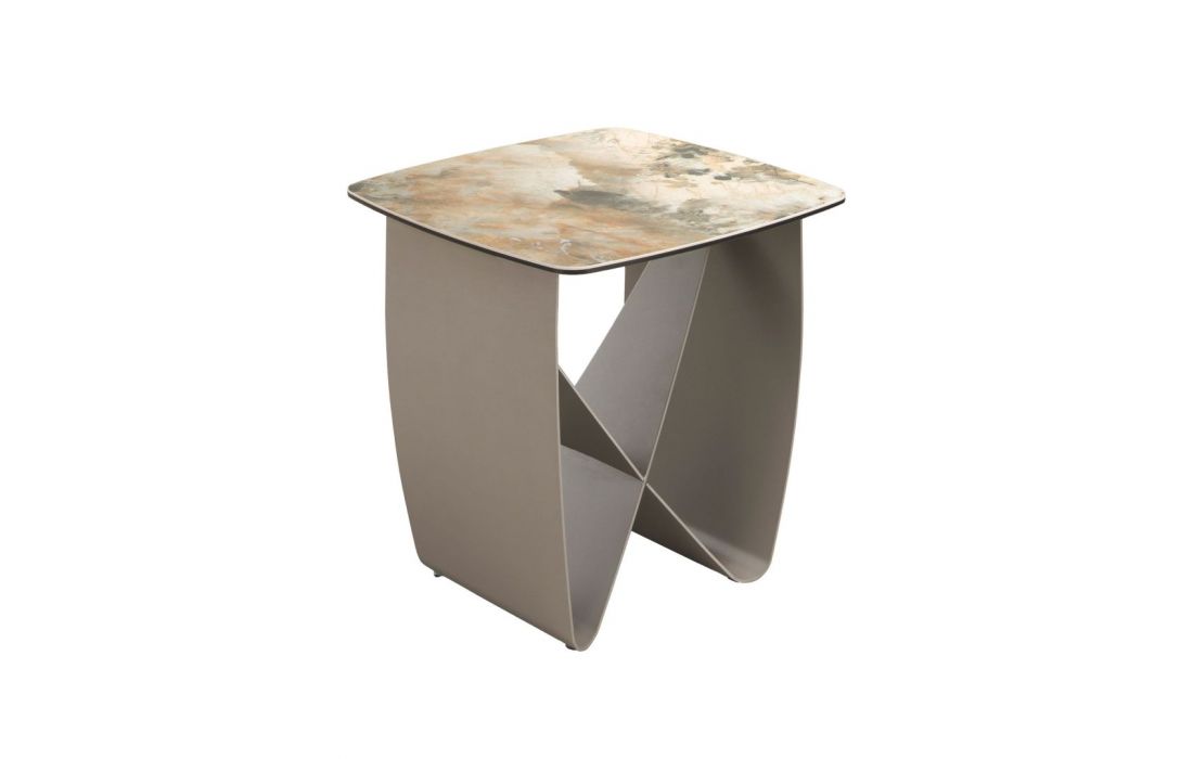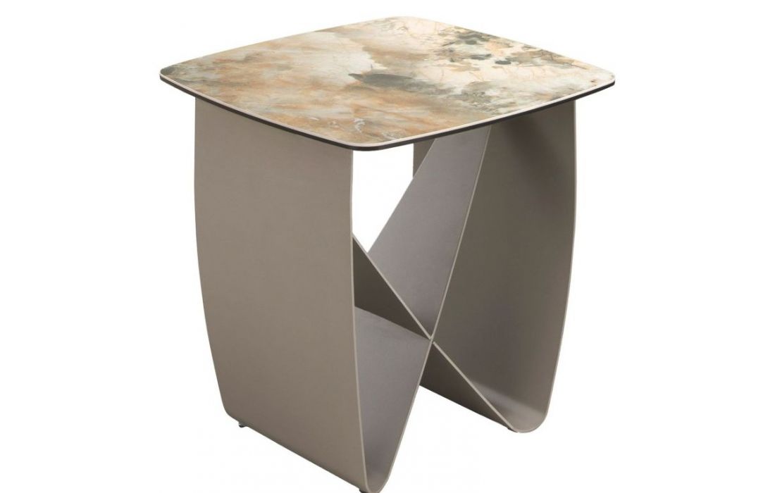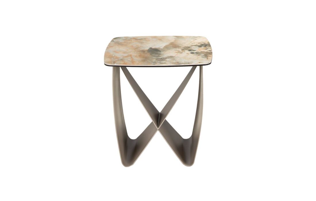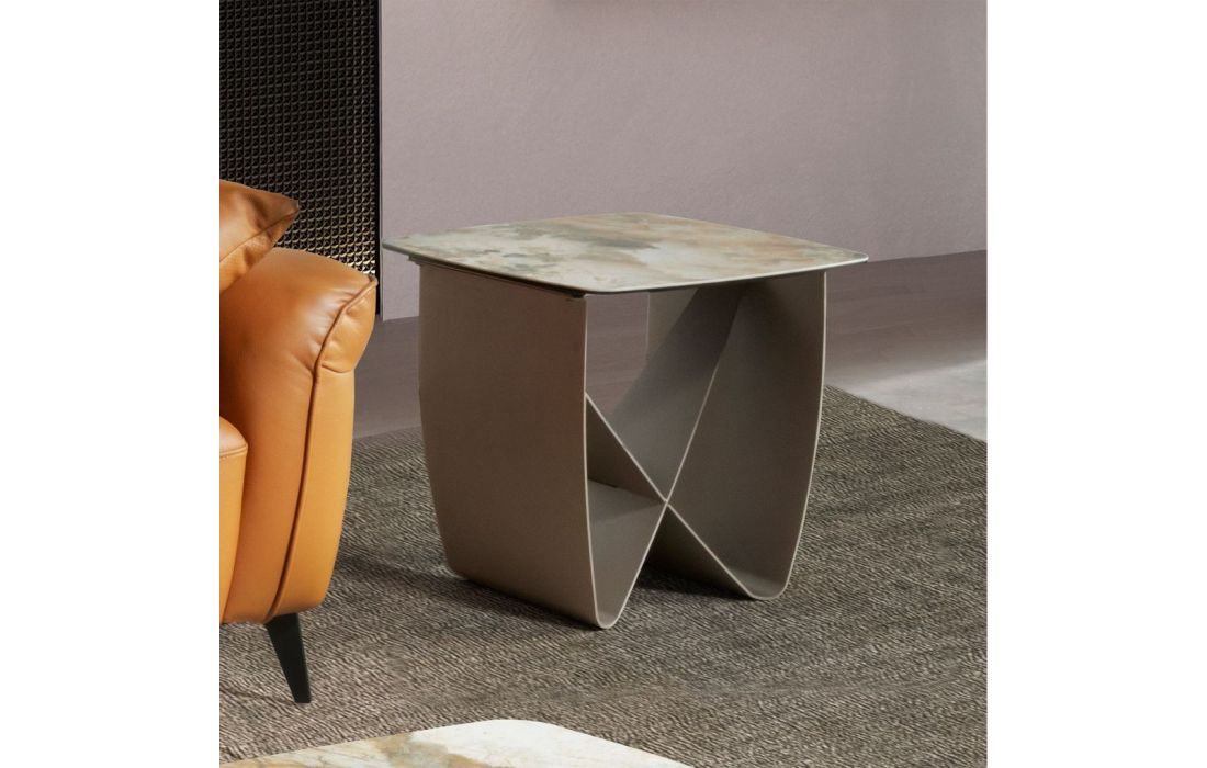 Modern side table with matte finish marble top and metallic finish stainless steel legsRecipient :