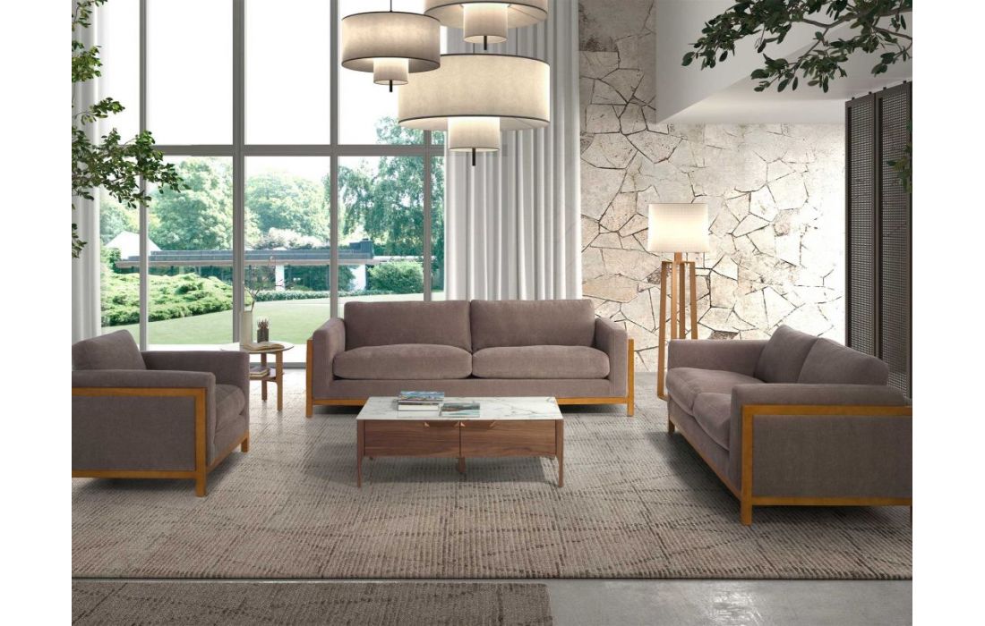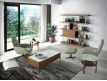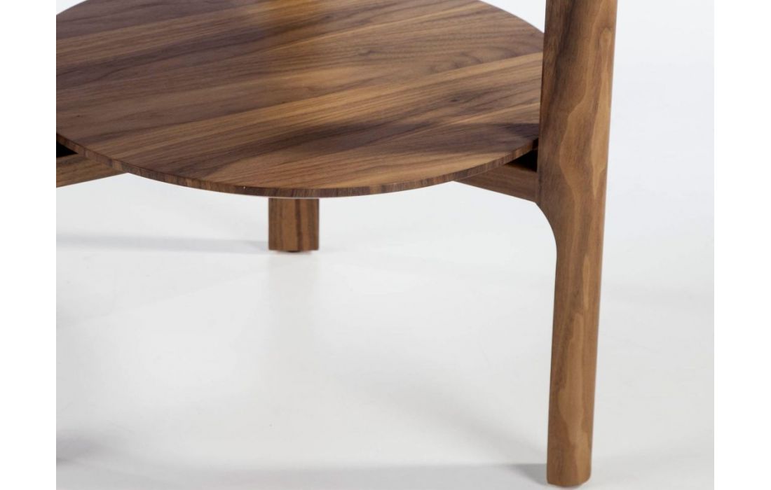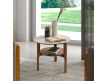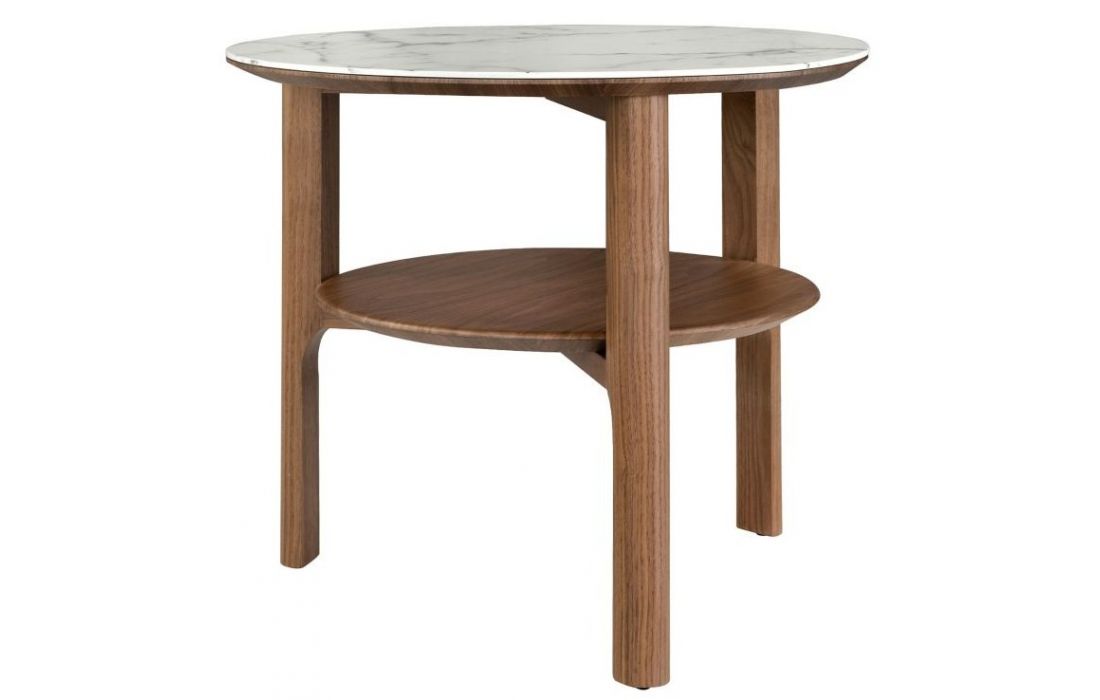 Side table with structure in walnut veneer and top in fiberglass calacatta marble effect