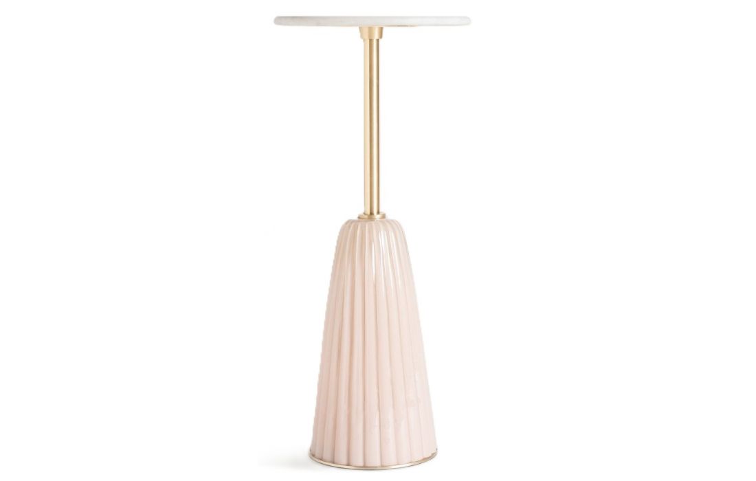 Side table with pleated glass structure in a delicate pink tone and marble topRecipient :