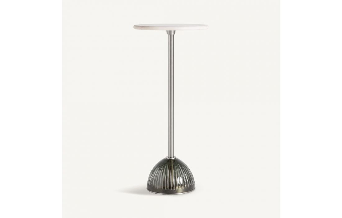 Side table combines the transparency of gray glass with the solidity of white marble and the shine of silver steelRecipient :