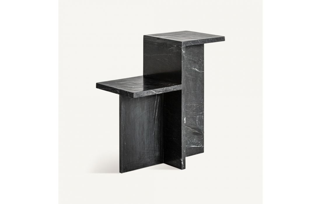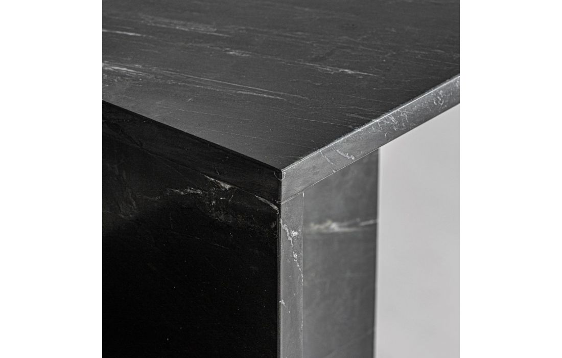 Side table made entirely of black marble with natural veins, this piece brings sobriety and sophistication to any environmentRecipient :