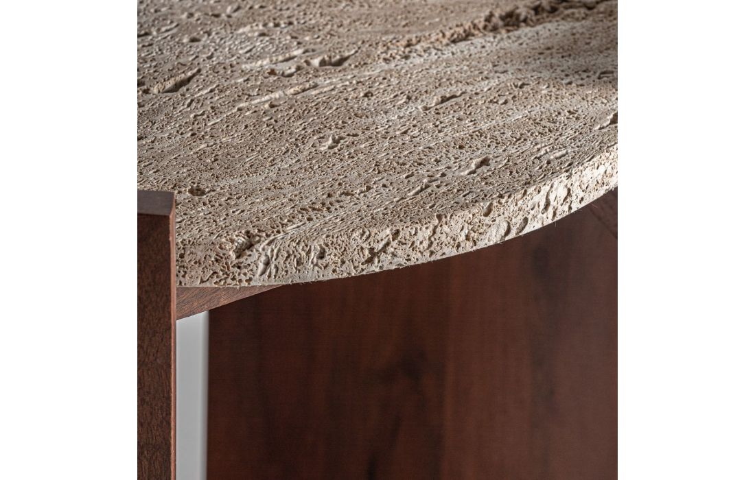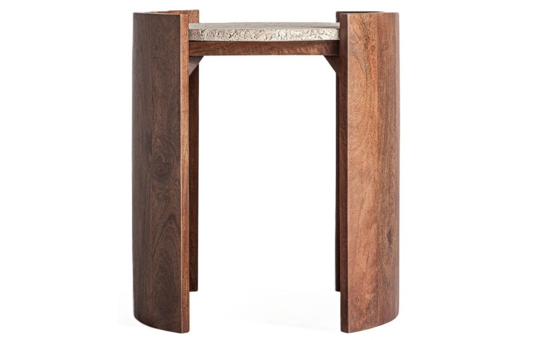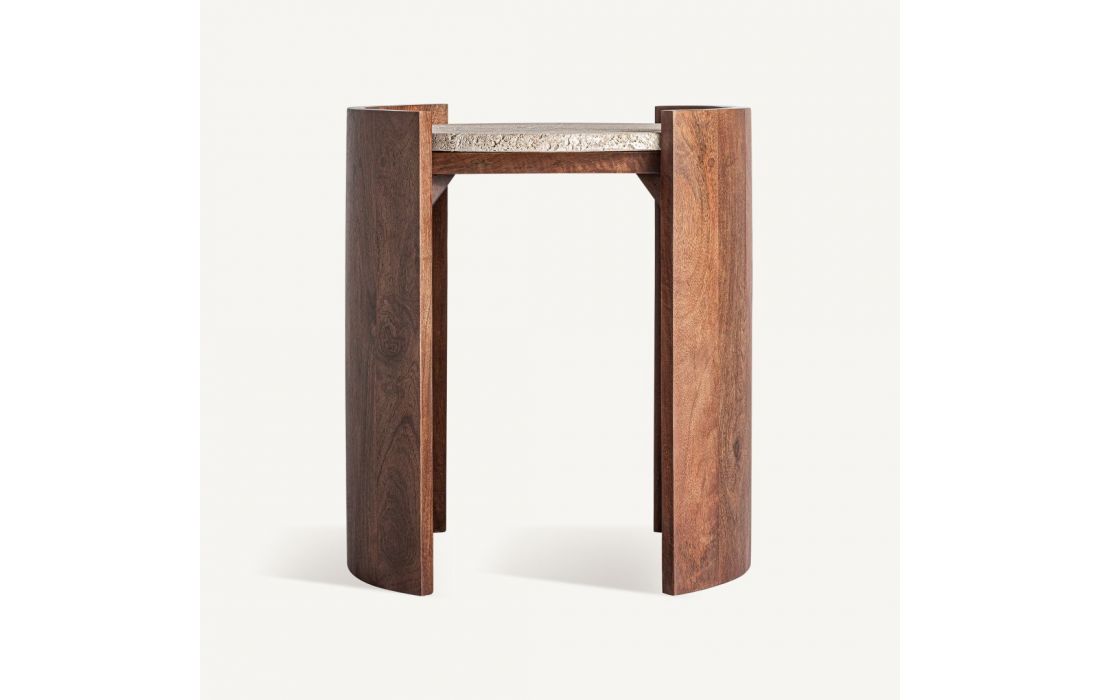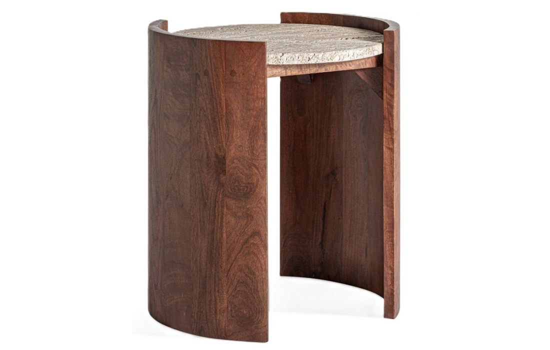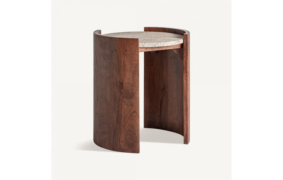 Side table combines the elegance of beige travertine with the warmth of mango woodRecipient :