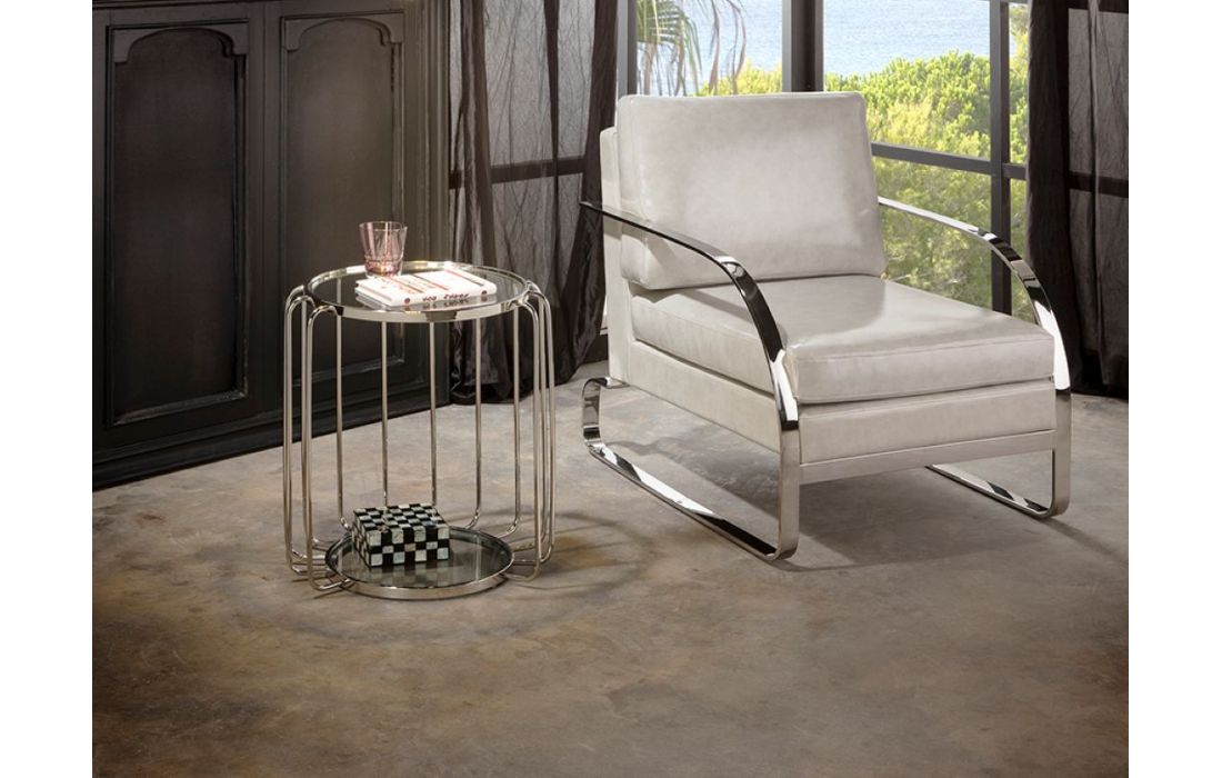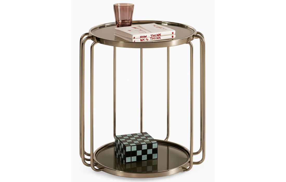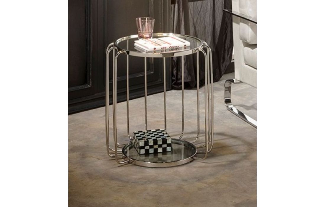 Round side table, made of steel with a 5 mm tempered glass top and lower shelf